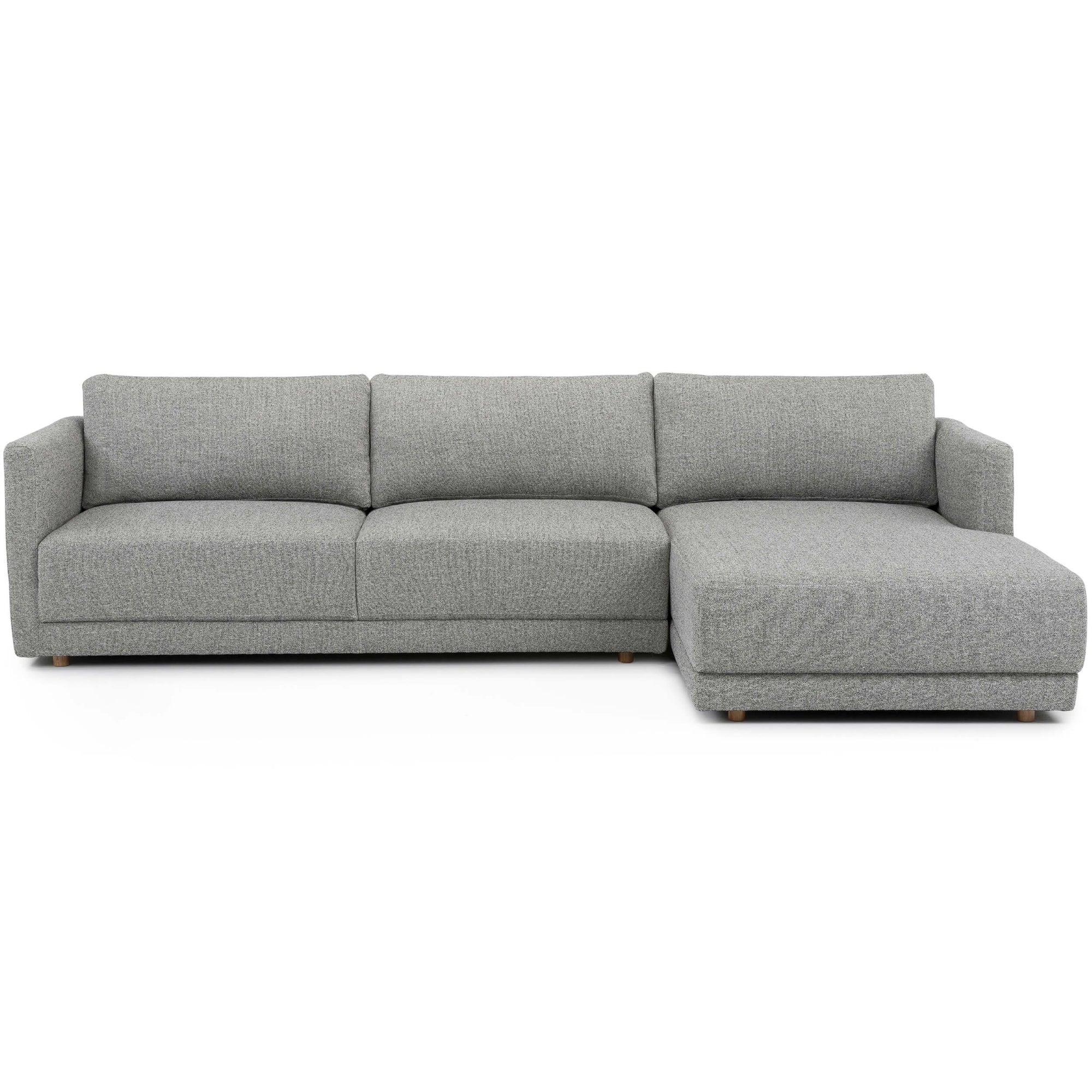 Clean lines for a classically transitional look. An oak frame and inviting grey upholstery form exaggerated seat proportions for a chic look with elevated comfort. Sectional with right arm-facing chaise.