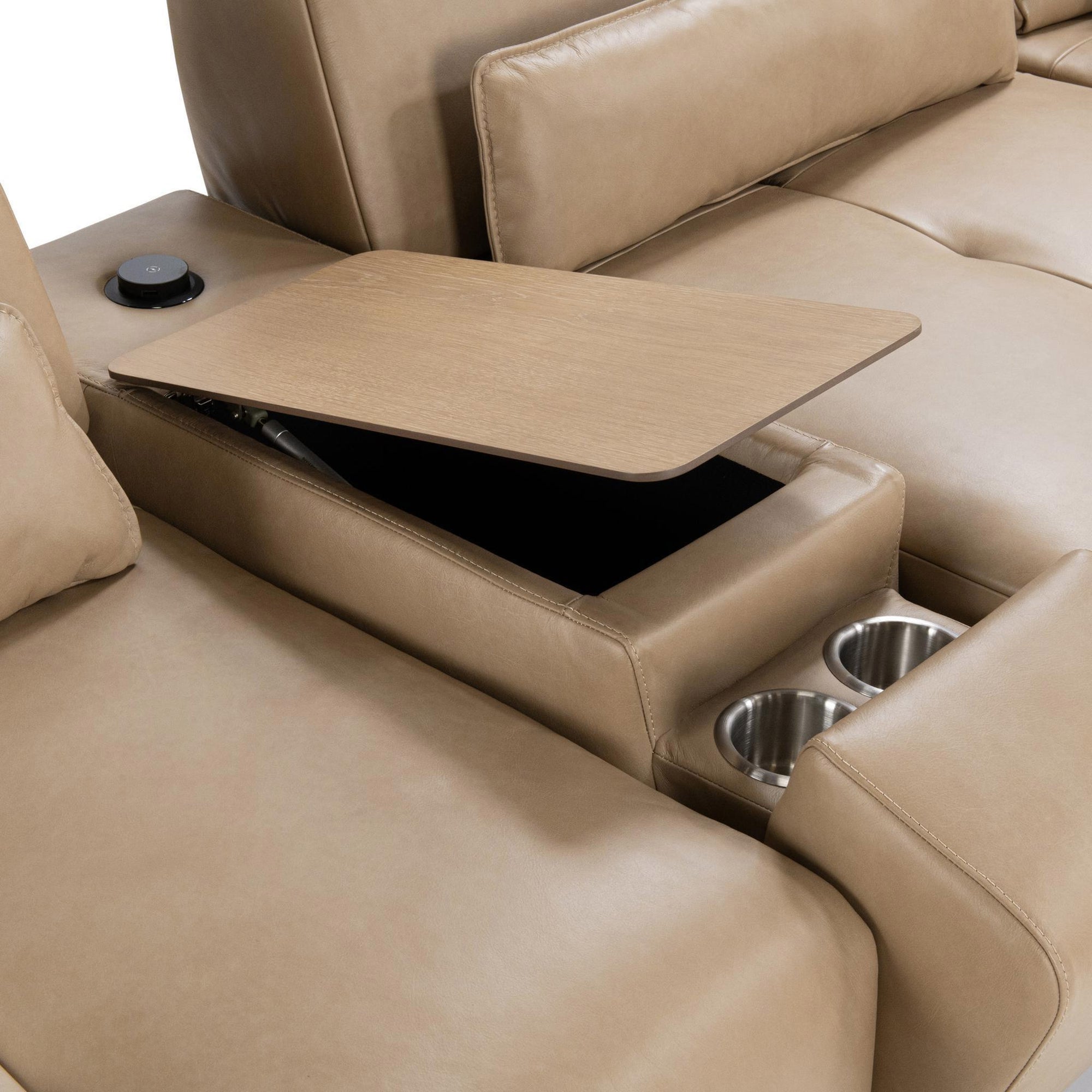 The Leah Leather Sectional offers modern comfort, expertly crafted in top-grain leather for a refined and durable finish. Its generous L-shaped layout provides ample seating. Plush, power adjustable headrests and clean-lined cushions deliver tailored support and contemporary elegance. This sectional blends timeless sophistication with functional design, making it a striking centerpiece for any living space.
