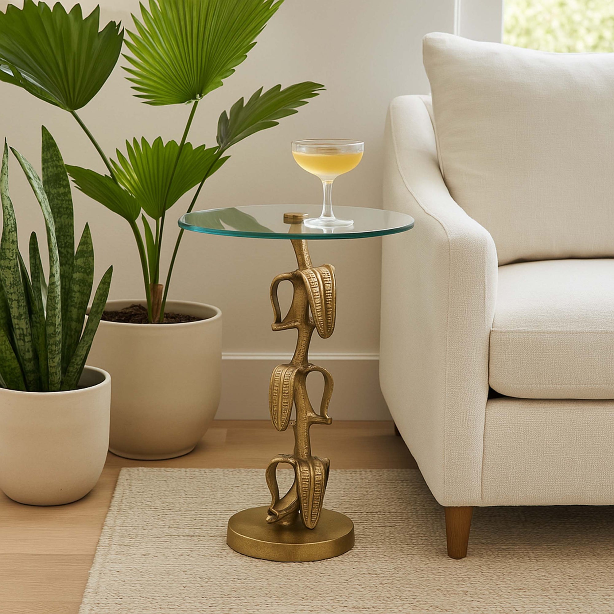 Elevate your home decor with the striking boho-glam Bananas Accent Table, a perfect blend of artistic craftsmanship and modern elegance. Its unique design complements a variety of interior styles, from contemporary to eclectic, adding sophistication and charm. Whether placed beside a sofa, next to a bed, or as a statement piece in a reading nook, this accent table combines functionality with eye-catching aesthetics. Upgrade your space with this chic and versatile addition.
