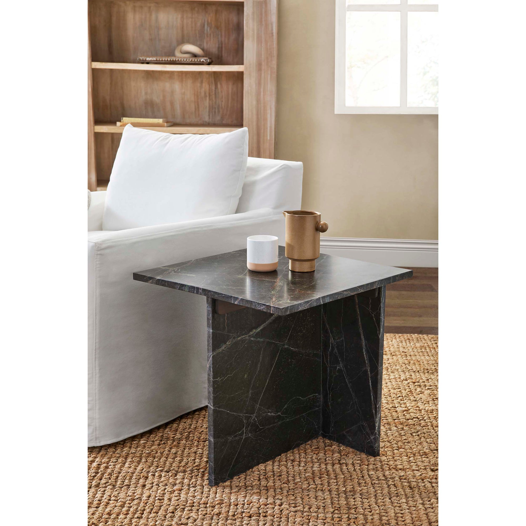 The Bexly Square End Table features a sleek geometric design crafted from luxurious marble. Highlighting the natural beauty of the stone, it makes a refined yet striking statement for any living space, perfect for living rooms, bedrooms, or lounges.