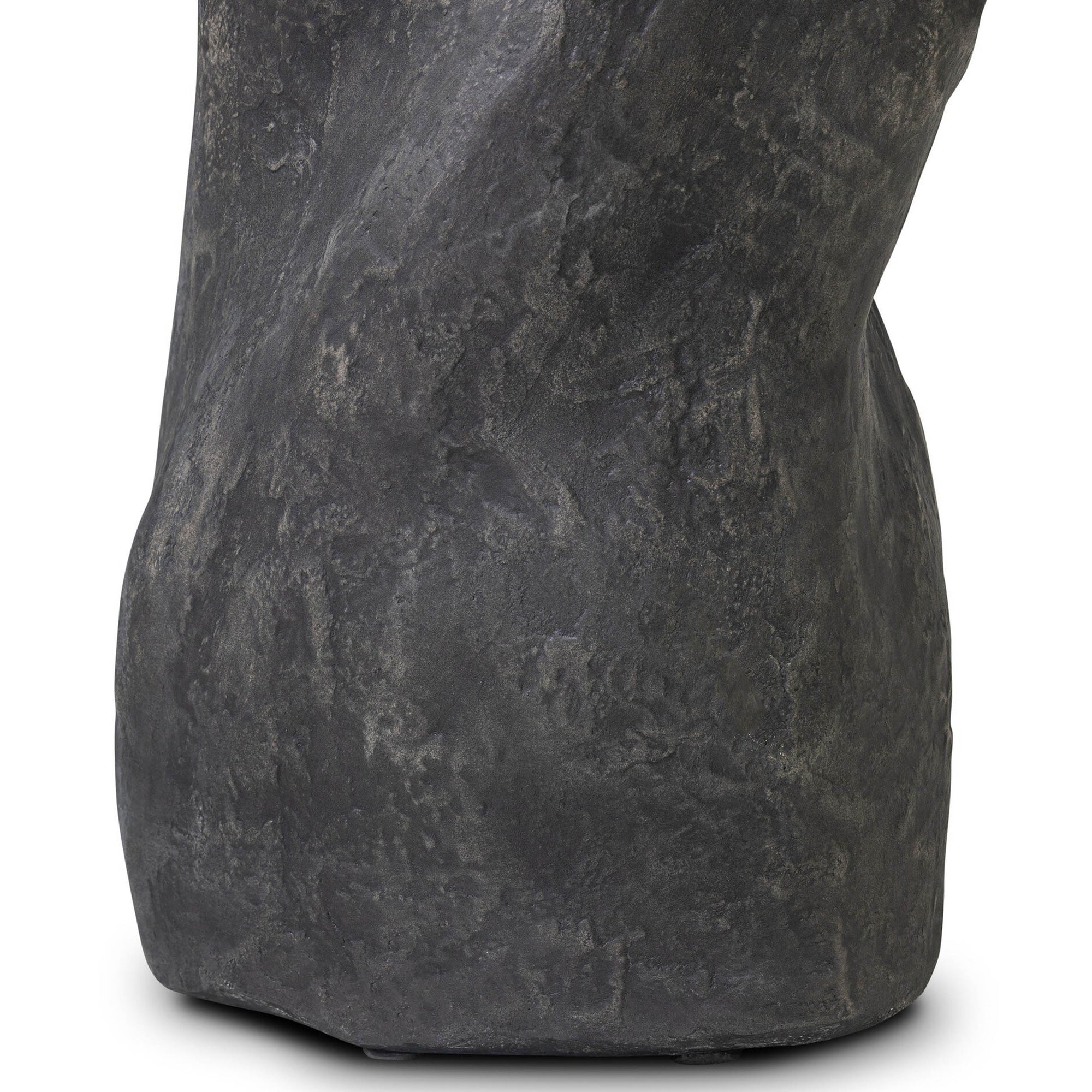 The Bomba Small End Table features an organically shaped, textured black concrete top for a modern, sculptural look. Compact and versatile, it’s perfectly sized to keep drinks, books, or decorative items within easy reach, adding both function and style to any room.