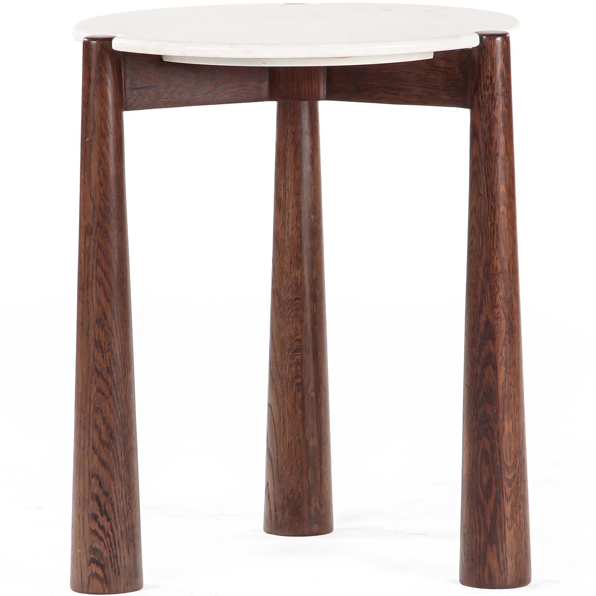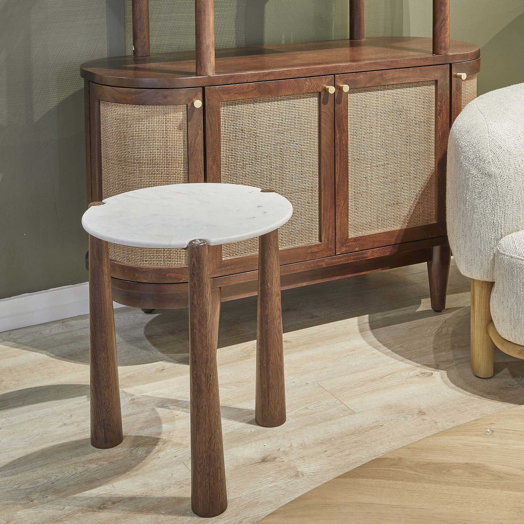 The Carver Side Table balances refined proportions with organic geometry and natural materials. A softly notched stone top rests on three reverse-tapered, solid FSC-certified oak legs, creating a sculptural yet functional design. Available in natural and mid-tone finishes, this elegant piece adds warmth and sophistication to any space.