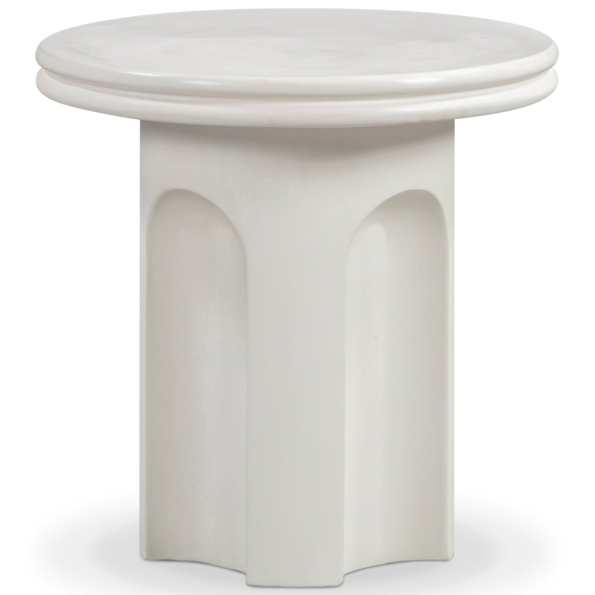 The Cassandra Outdoor Side Table redefines modern design with its architectural arched base and rounded form. Crafted using fiberglass reinforced concrete for both indoor and outdoor spaces, its weather- and stain-resistant finish ensures lasting beauty. This table makes a statement of art and function in any setting.