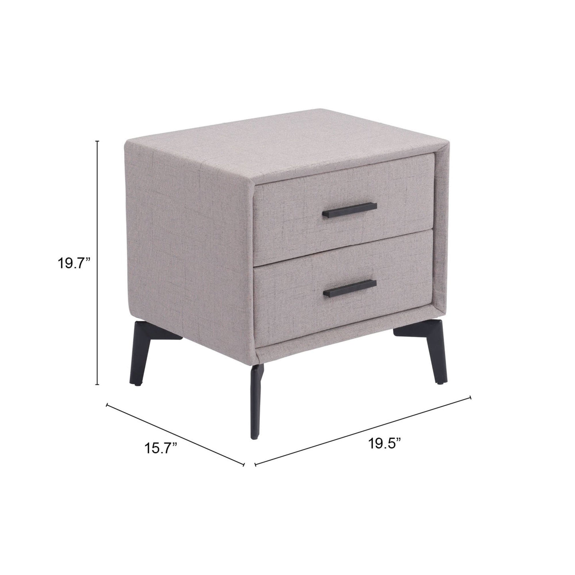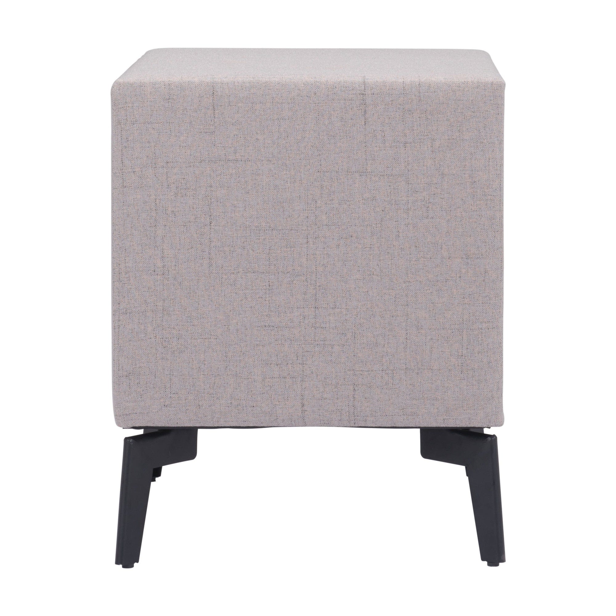 This side table has an MDF and plywood frame and two drawers wrapped in polyester fabric and sits on top of a powder coated steel frame and looks great in any space, modern, urban, glam, or boho chic.
