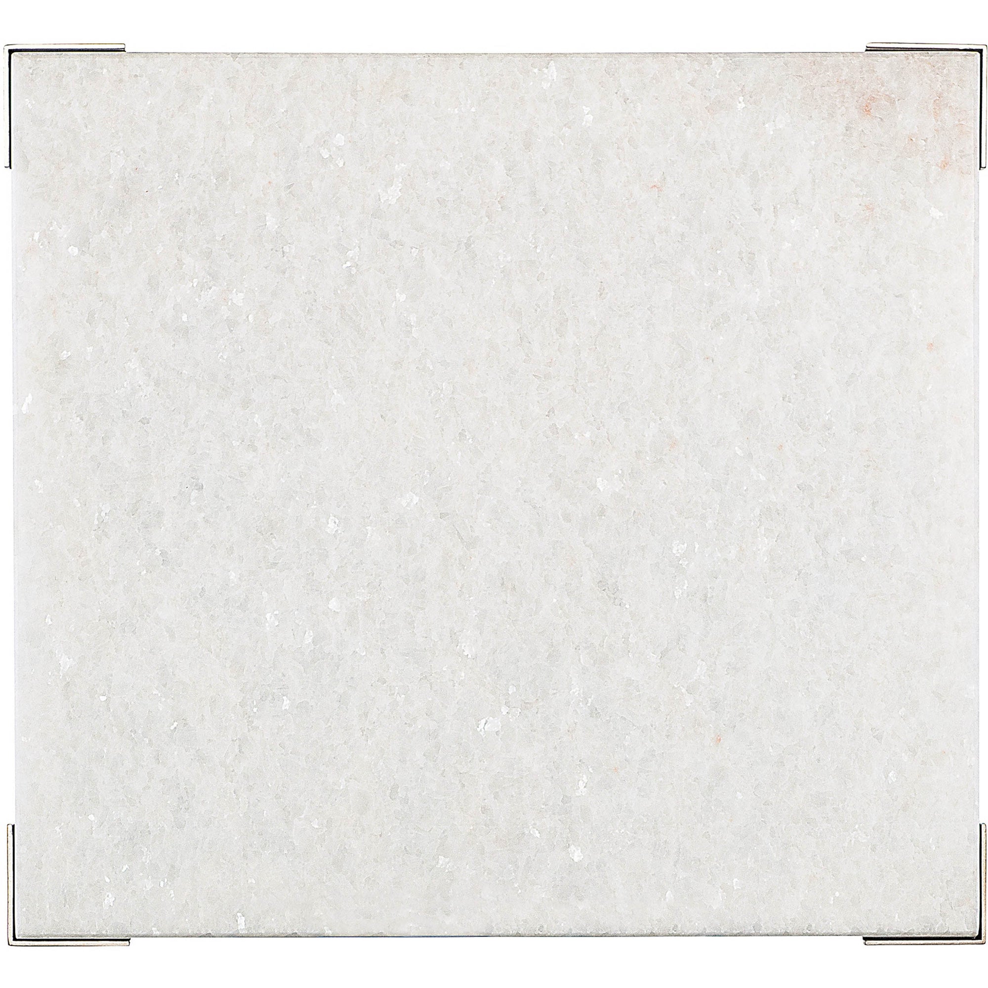 The Jen End Table adds a touch of modern elegance to any room. This refined piece features a beautiful natural white stone top, perfectly complemented by a sleek frame with slim, tapered metal legs. An open glass shelf below provides a light, airy space for display or storage. With its blend of timeless materials and clean, minimalist styling, the Jen End Table is a versatile choice for transitional or contemporary decor.