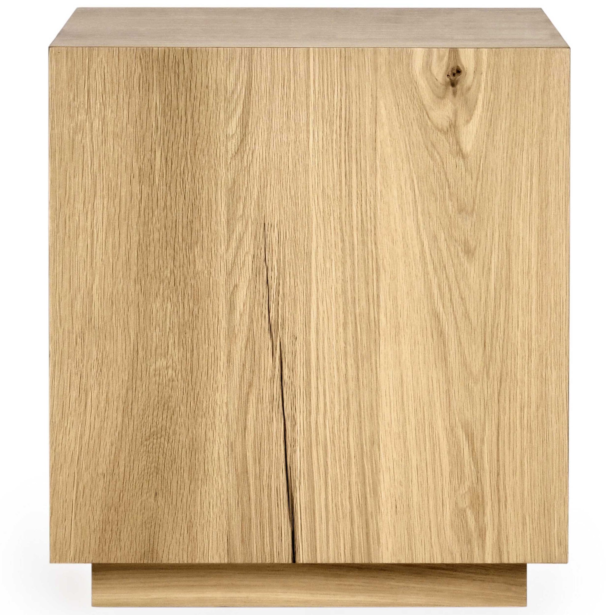 The Layne Square End Table features sleek oak wood veneer construction with a stylish plinth base and a modern, minimalistic design. Its sophisticated yet simple lines and timeless appeal make it a versatile addition to any living room or lounge area.