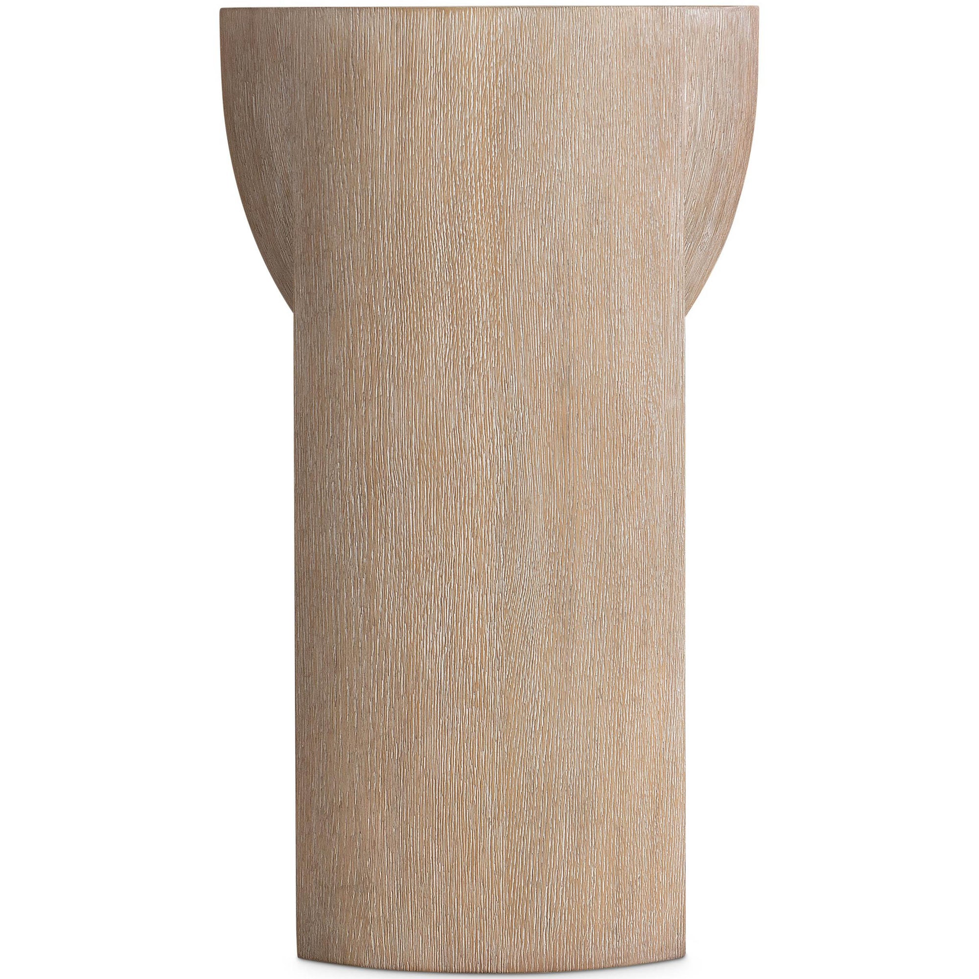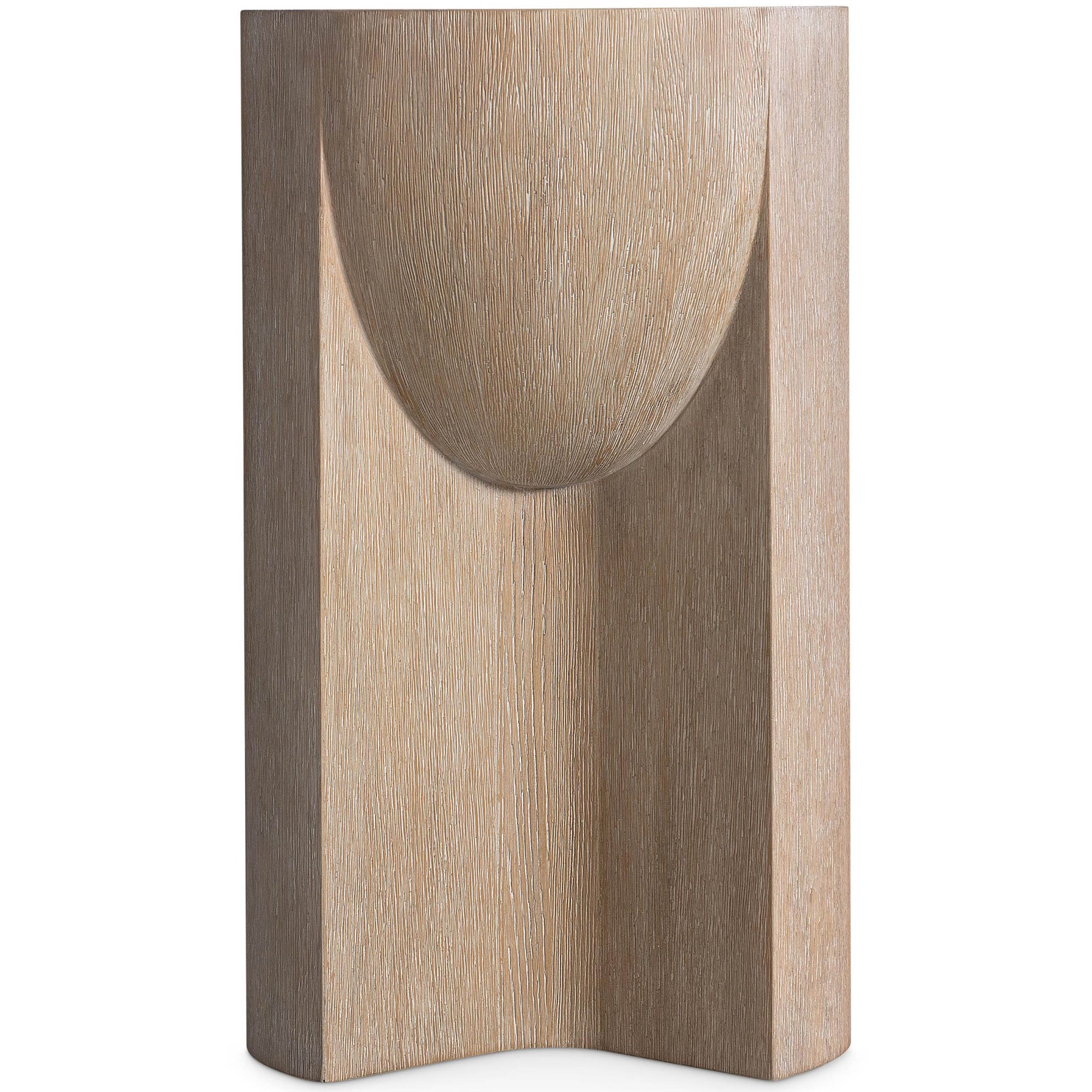 The Loggia Accent Table blends modern artistry with sculptural balance through its interplay of convex and concave forms. Crafted from cast resin with a realistic wood grain texture in the soft Aria finish, it features a shallow basin-style top for added visual depth. This compact table brings a refined and contemporary touch to any room.