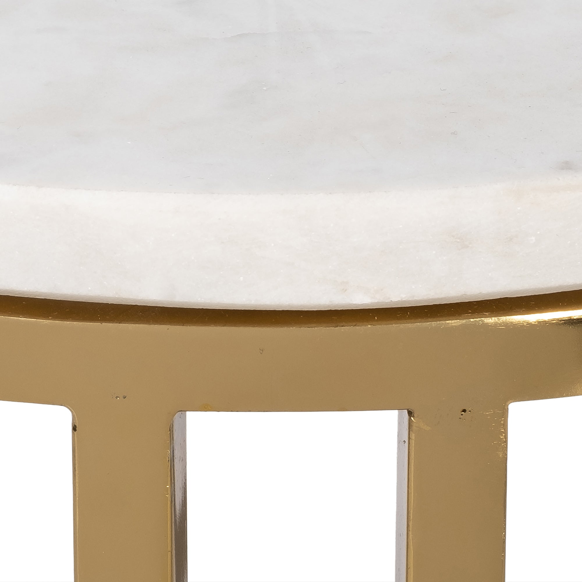 The Marble Drink Table brings timeless elegance to any space with its chic contrast of materials. A smooth white marble top offers a refined surface, while the slender gold iron frame adds a touch of modern glam. Compact yet stylish, this table is perfect for holding drinks, books, or decorative accents beside a sofa or chair. Its clean design and luxurious finish make it a versatile accent piece, blending seamlessly with both contemporary and classic décor.