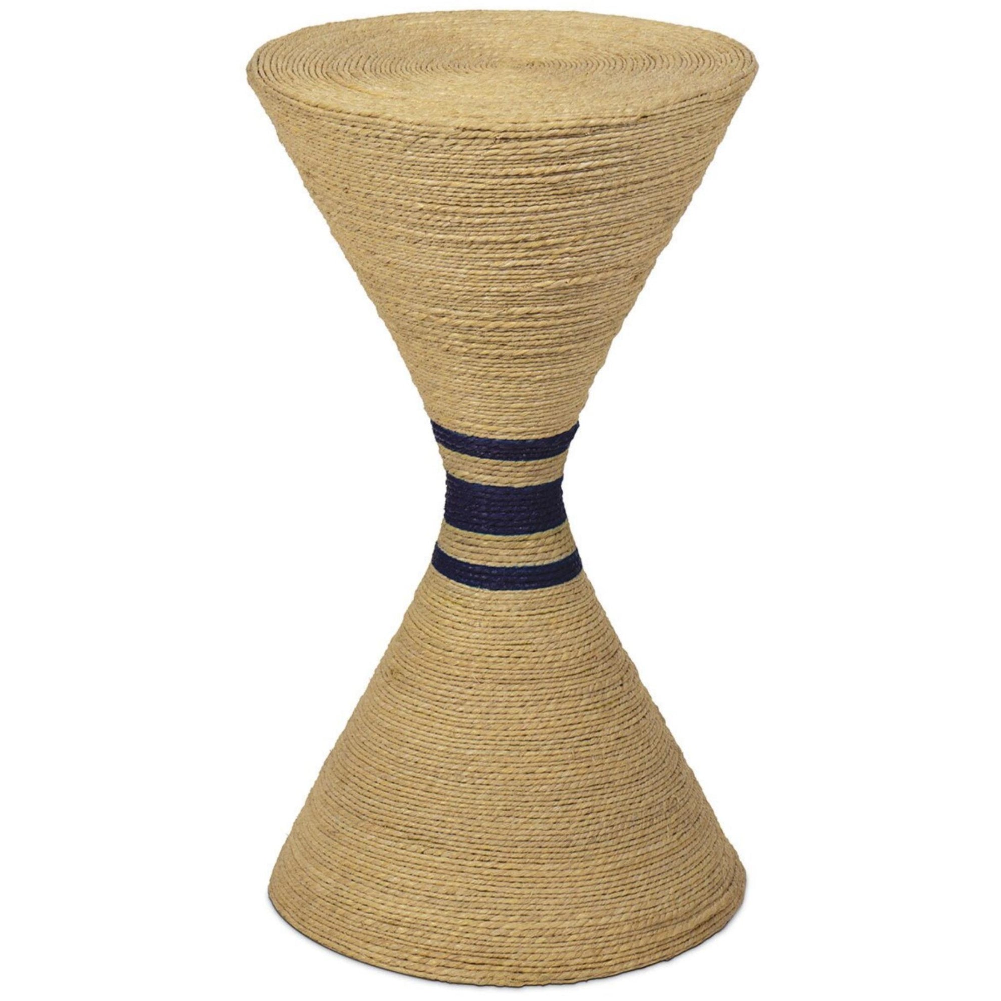 The Maren Side Table blends coastal charm with modern design in a chic hourglass silhouette. Wrapped in natural fibers and accented with bold navy stripes, it brings subtle nautical flair while adding texture and warmth to any room. Versatile on its own or styled alongside other heights from the collection, the Maren Side Table makes a stylish statement—perfect for coastal, contemporary, or eclectic spaces.