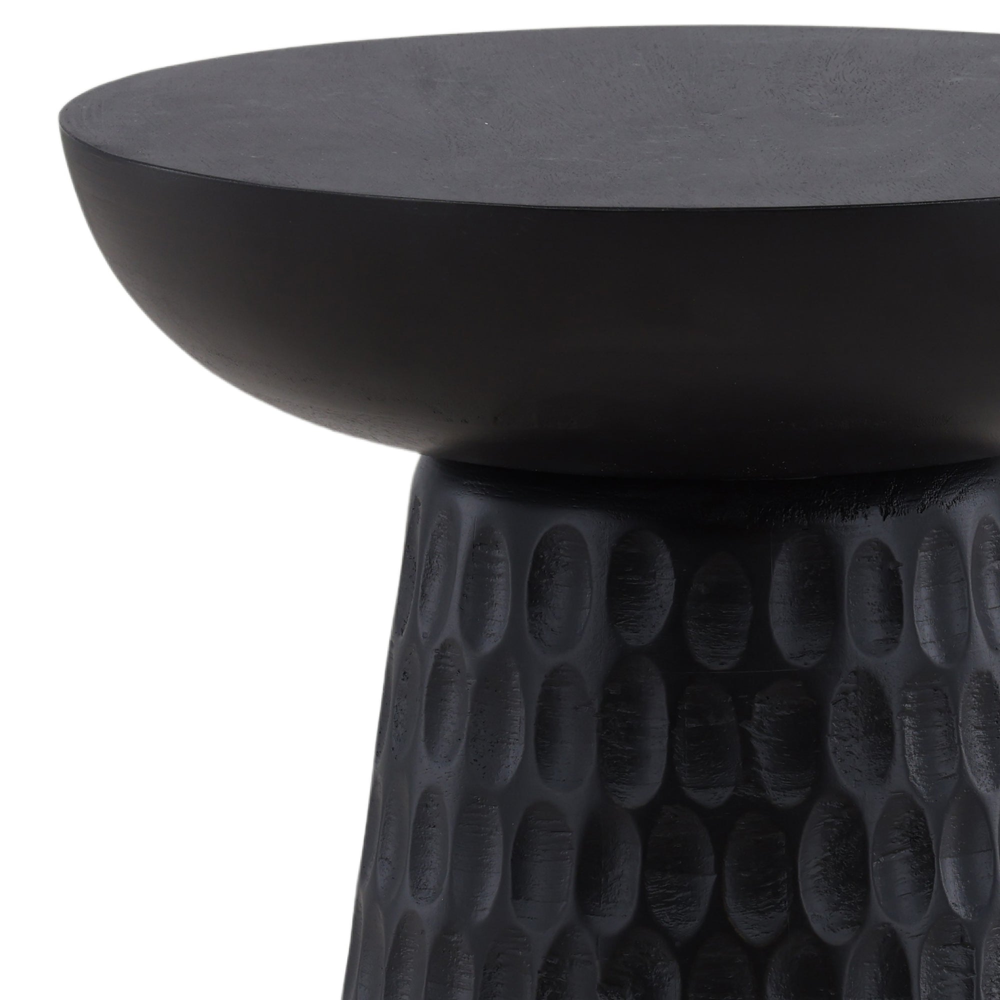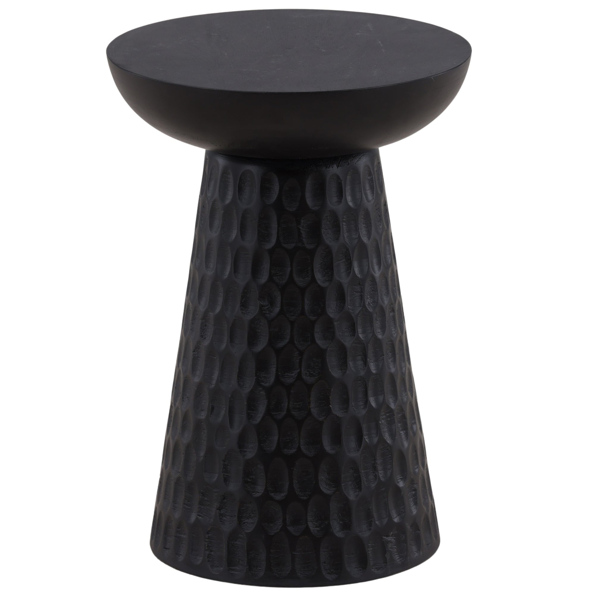 The Marzell Side Table is a striking and sculptural accent piece for the modern home. Crafted from solid mango wood and finished in a bold black, its unique silhouette adds a touch of artistic flair to any room. The round top is perfectly sized for a drink or a small decorative object, making it an ideal companion to a sofa or armchair. With its dramatic presence and solid construction, the Marzell Side Table is both a functional surface and a piece of art.