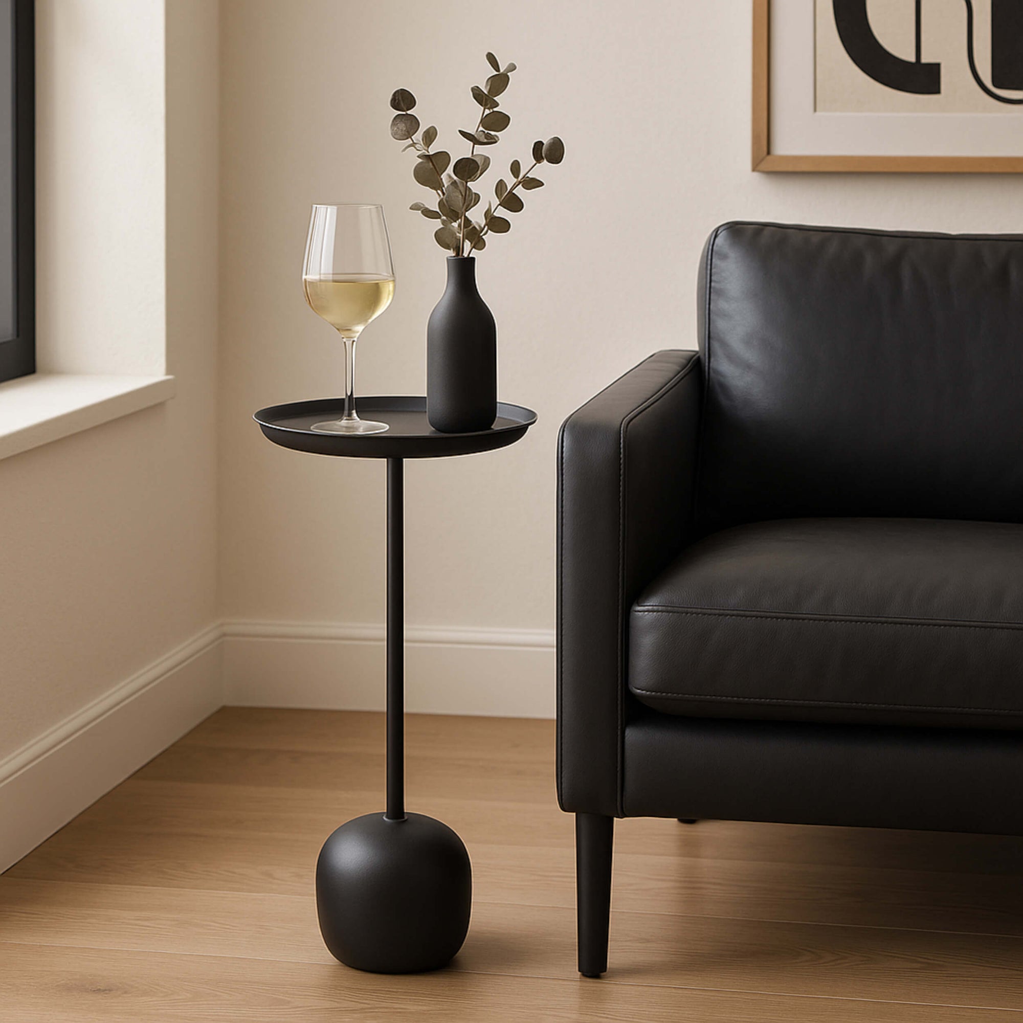 Add both style and practicality to your space with this Metal Drink Table. Designed with a contemporary minimalist aesthetic, its narrow profile makes it ideal for small spaces, while the raised edge on the tabletop keeps drinks and essentials secure. The weighted base ensures stability, combining functionality with sleek design. Perfect as a side table in living rooms, bedrooms, or office spaces, it offers a versatile and modern solution for everyday use.