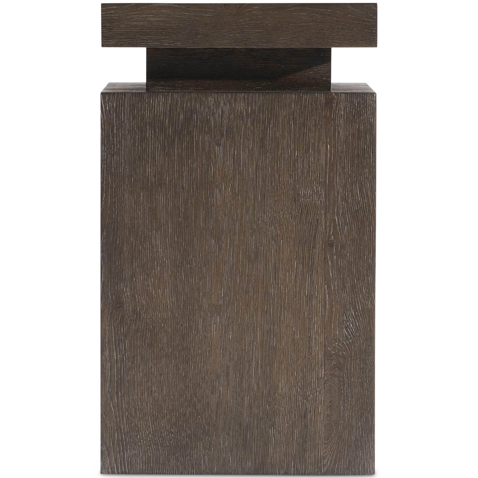 - Wire-brushed texture with sculptural base design