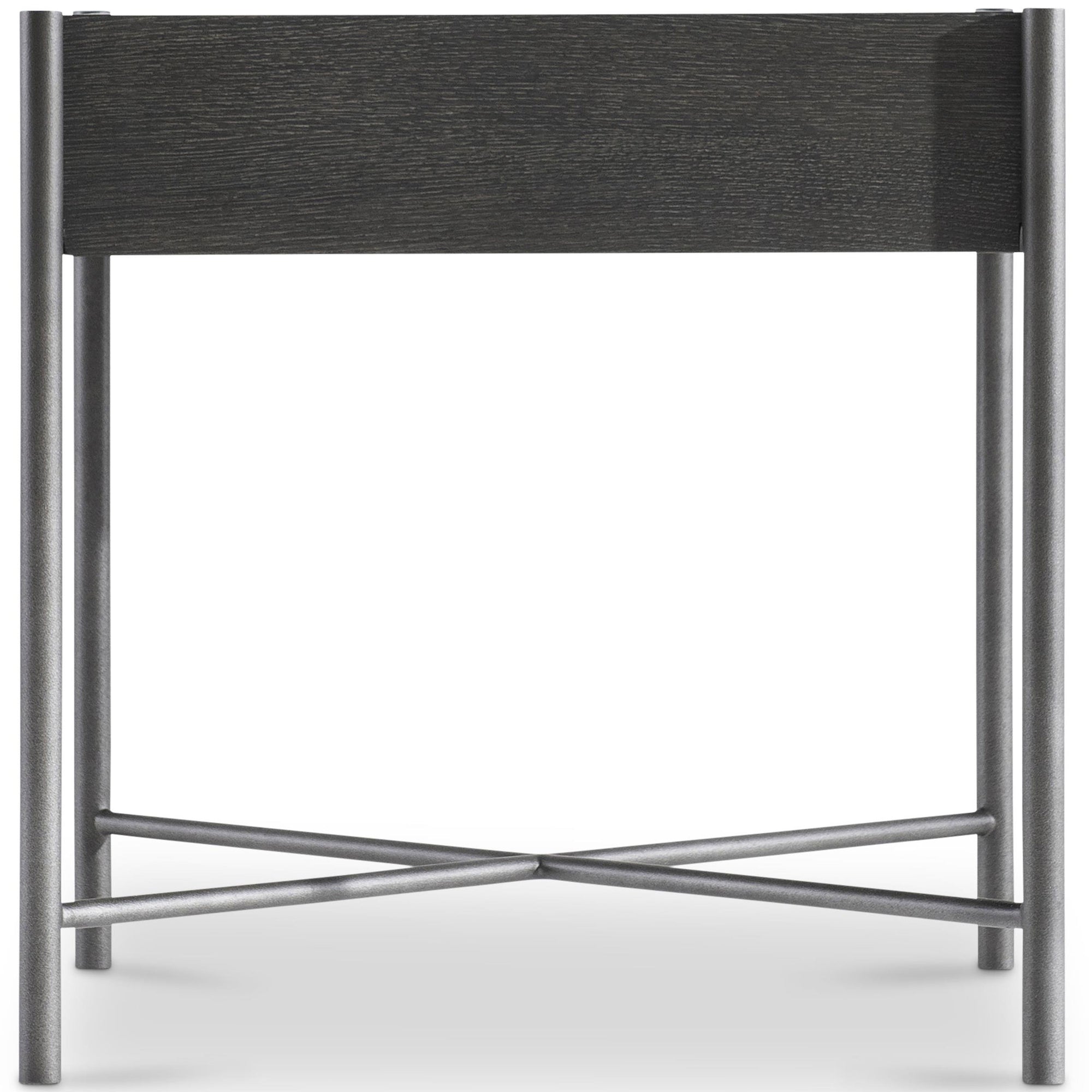 The Outline Side Table offers a sleek, modern aesthetic defined by its slim metal pillars that rise to frame the tabletop. Combining the warmth of wire-brushed oak in the Kohl finish with the cool sophistication of textured steel in Atra, this design achieves a perfect balance of materials and form.