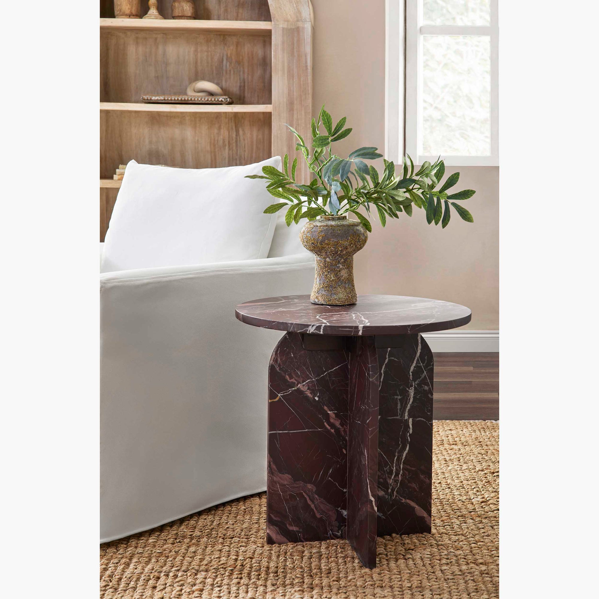 The Reilly Accent Table enters the realm of exquisite design with the Reilly Collection. Each table tells a story with its intricate veining and deep, rich hues, bringing a natural and artistic element to your living space.