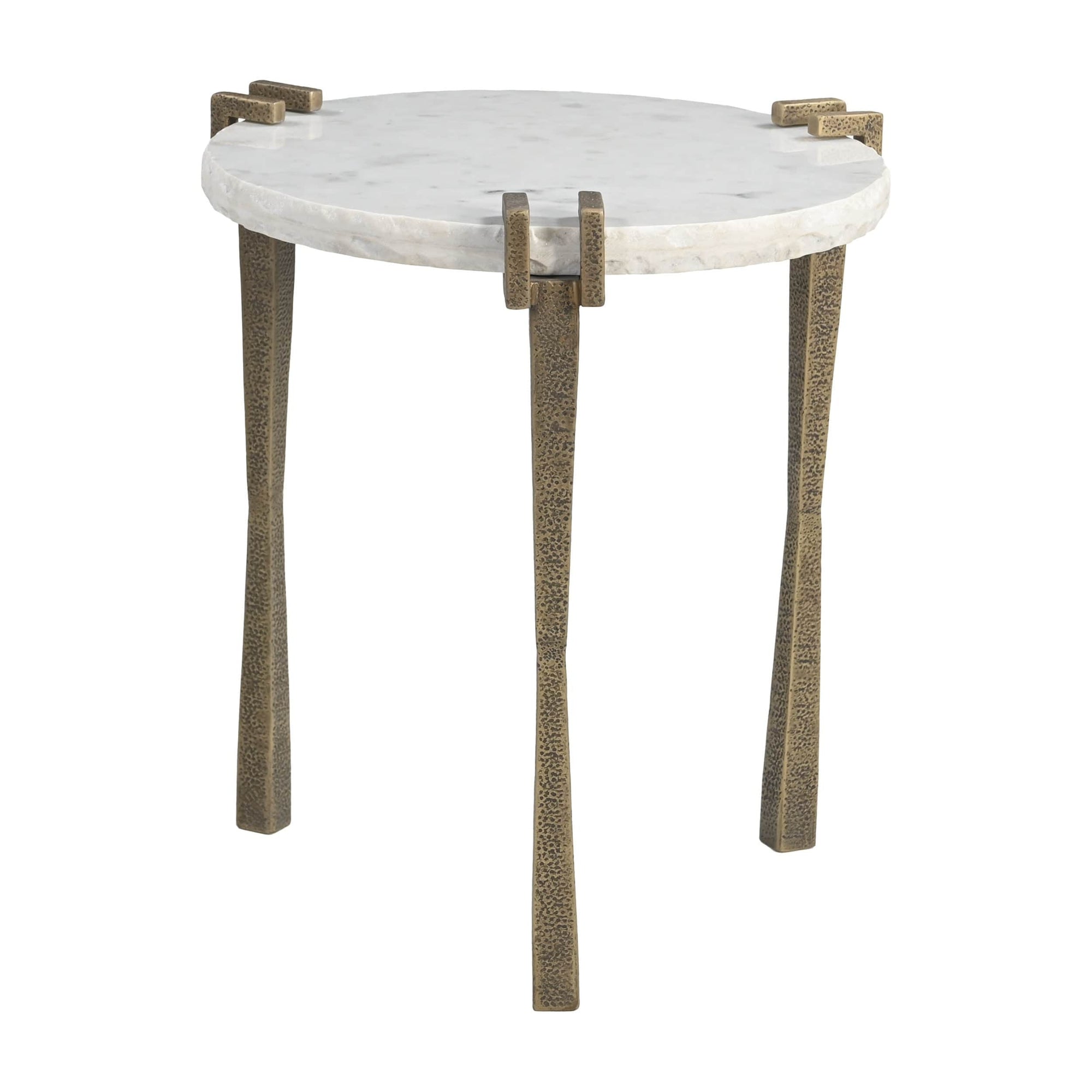The Rench Side Table in White exudes a clean, modern aesthetic. Made from sleek marble and iron, this side table is perfect for adding a touch of elegance to any living room or hospitality environment. Its bright white finish pairs effortlessly with a variety of decor styles, making it a versatile accent for contemporary interiors.