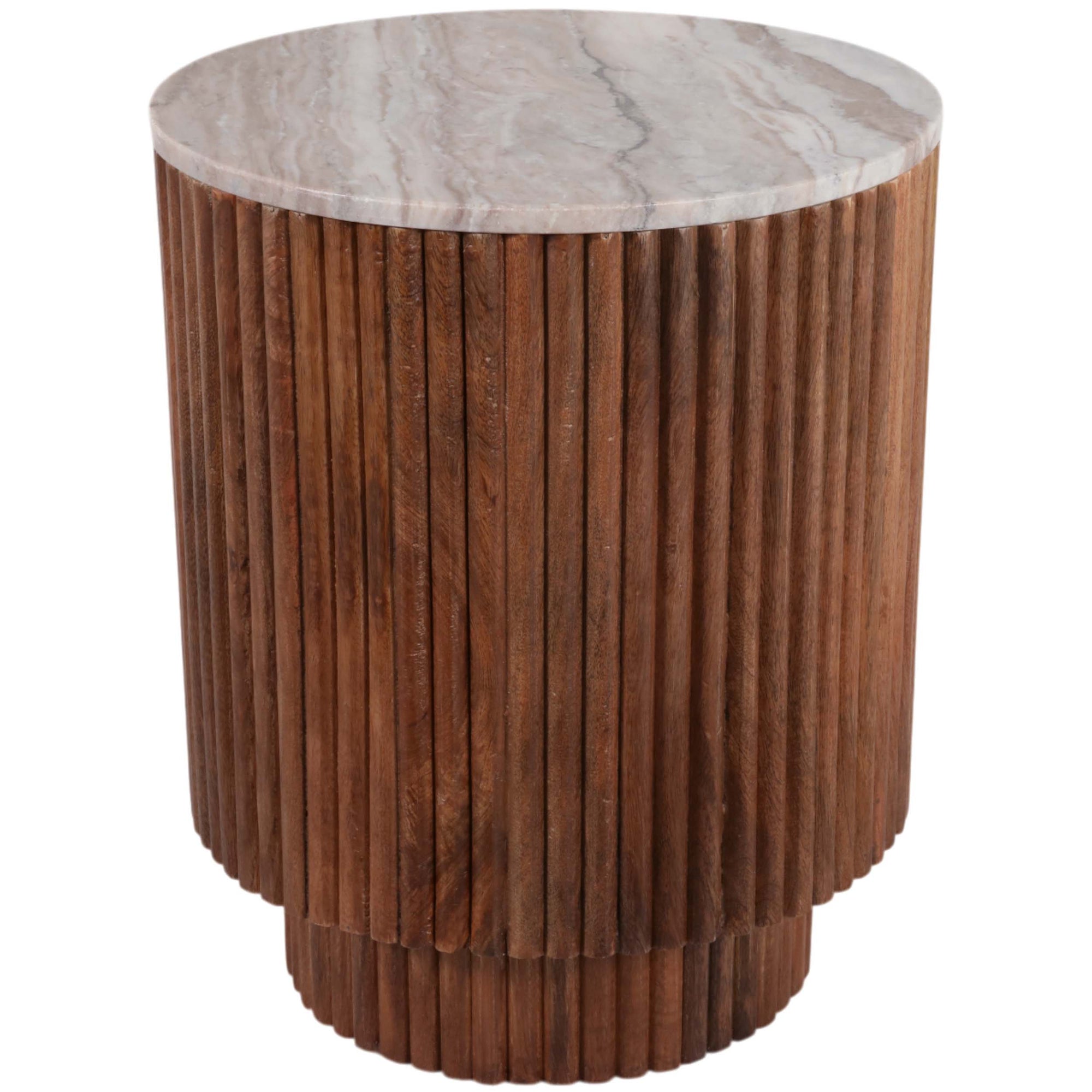 The Ribbed Pedestal Table is a striking blend of style and functionality, crafted from a premium mix of mango wood, stone, and marble for lasting durability. Its sleek, ribbed design adds texture and visual interest, making it a versatile accent for any living room, bedroom, or workspace. The smooth stone and marble top provides a sturdy surface for drinks, books, or decorative pieces, seamlessly merging practicality with elevated design. Perfect for modern, contemporary, or transitional interiors, this table enhances your space with timeless sophistication while serving as a functional and stylish addition to your home or office.