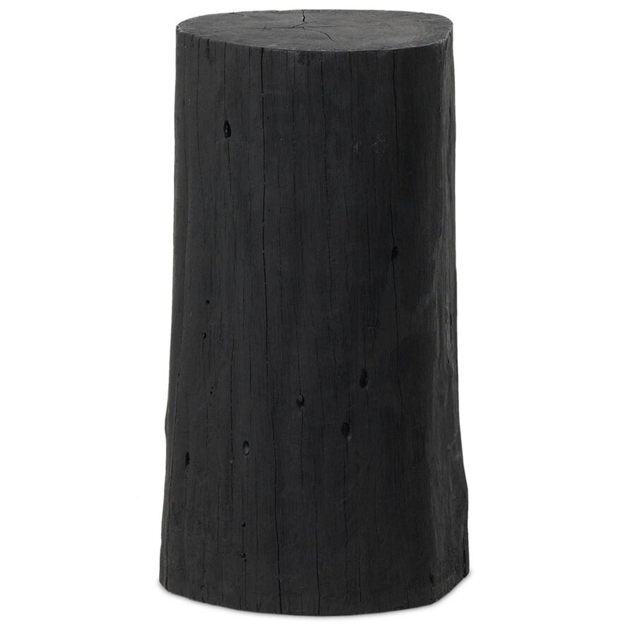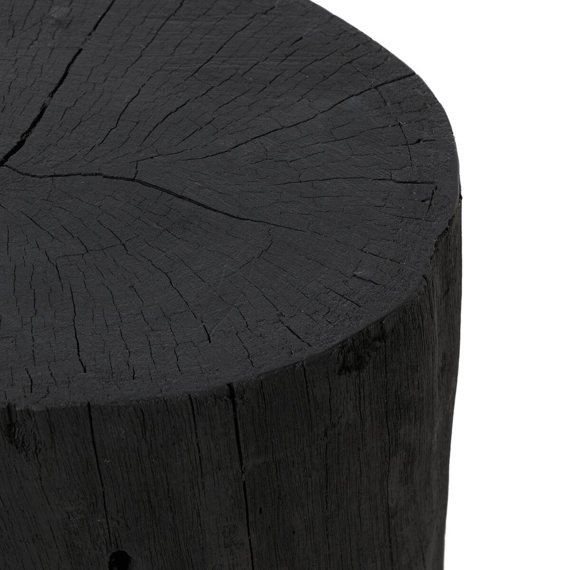 Sola End Table Ground any room with a style inspired by the beautiful simplicity of nature. Made of black-finished resin, the form for this special piece is molded from a tree trunk, then cast in resin to recreate the same shape and texture of the trunk — talk about a true statement piece.