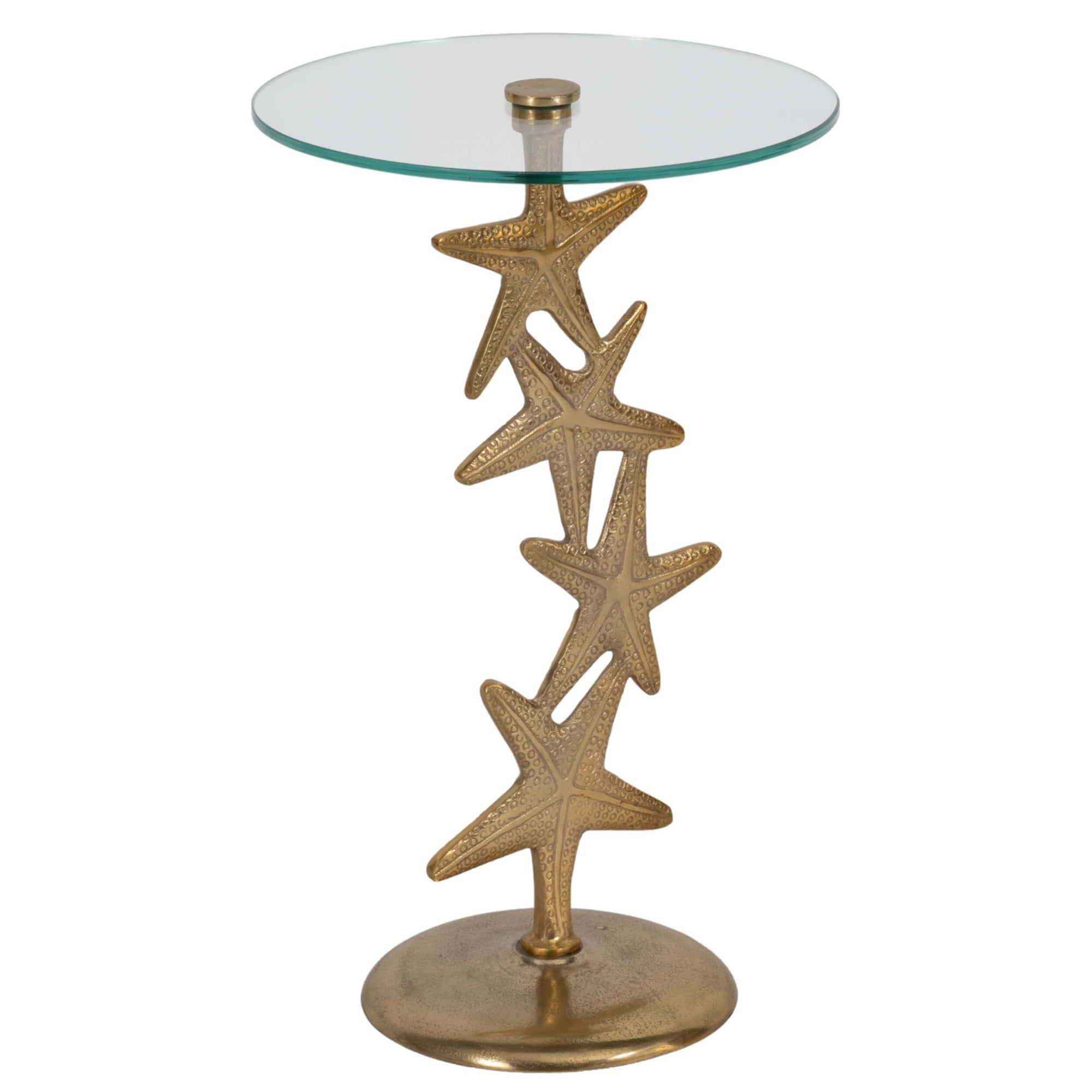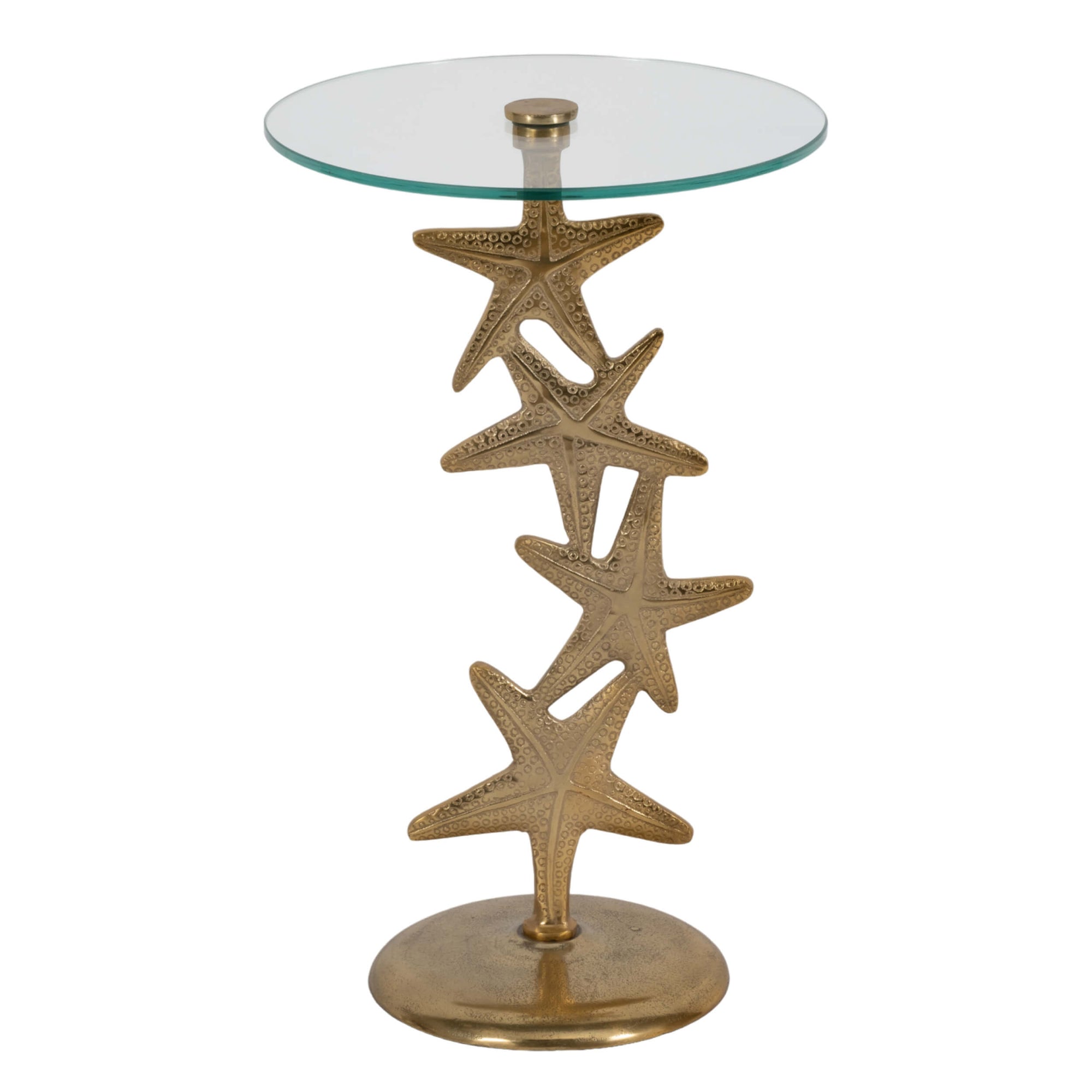 The Starfish Side Table brings coastal elegance to your space with its striking design. Featuring a handcrafted aluminum base adorned with intricately detailed starfish, it shimmers in a radiant gold metallic finish for a touch of glamour. The sculptural base doubles as an eye-catching focal point, while the smooth tabletop offers a functional surface for drinks, décor, or everyday essentials. Perfect for coastal, eclectic, or modern interiors, this side table adds a sophisticated seaside charm to any room.