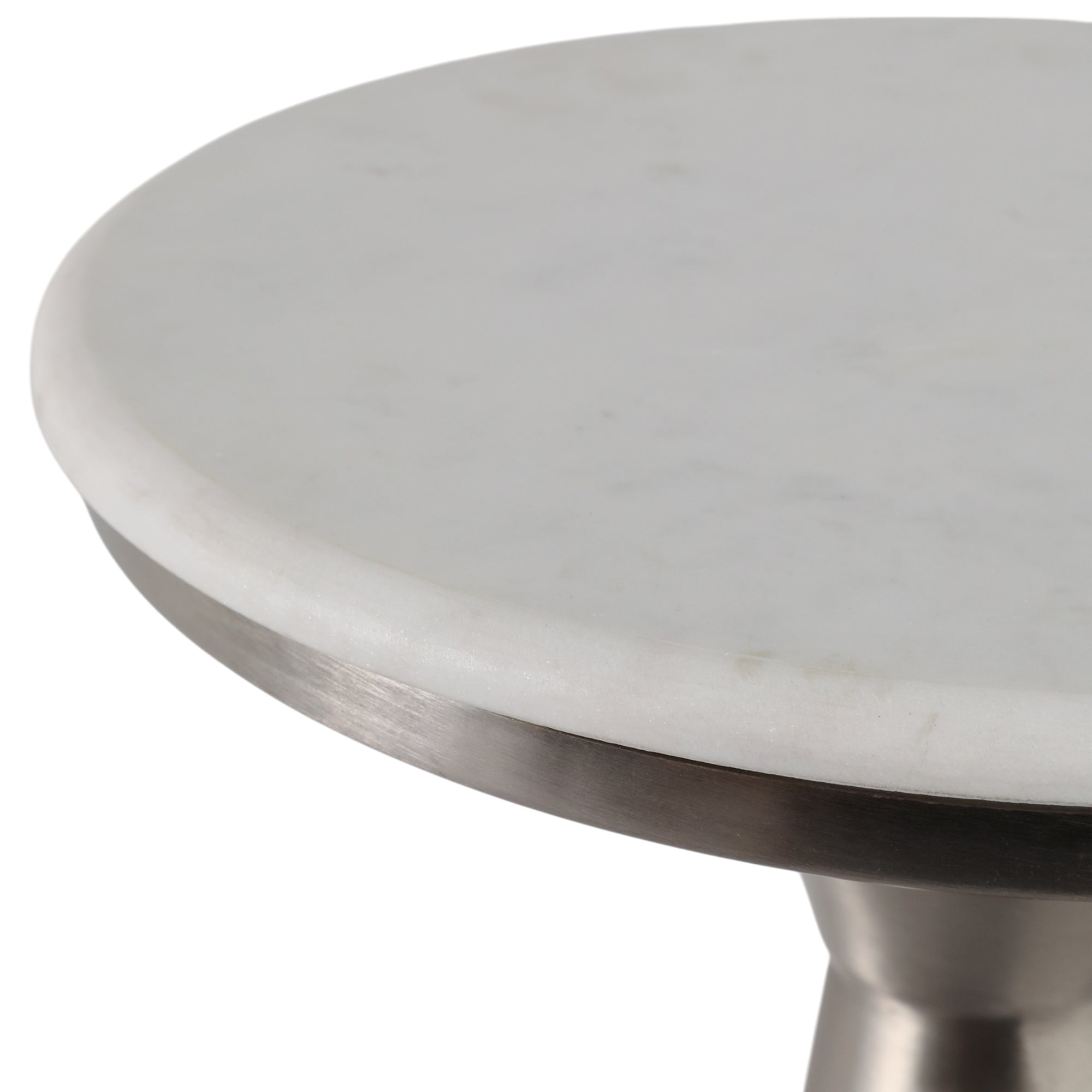 Add sculptural elegance and modern function to your space with the Tapered Metal Base Drink Table. This piece serves beautifully as a living room side table, lamp table, or stylish addition to a bedroom corner. Its round shape and compact footprint make it ideal for small side drink tables or narrow areas that need a touch of polish without overwhelming the layout. Whether used as a modern end table in your living space, a small round side table in a reading nook, or styled as part of a pair of accent tables, its tapered profile and solid construction offer both beauty and everyday reliability.