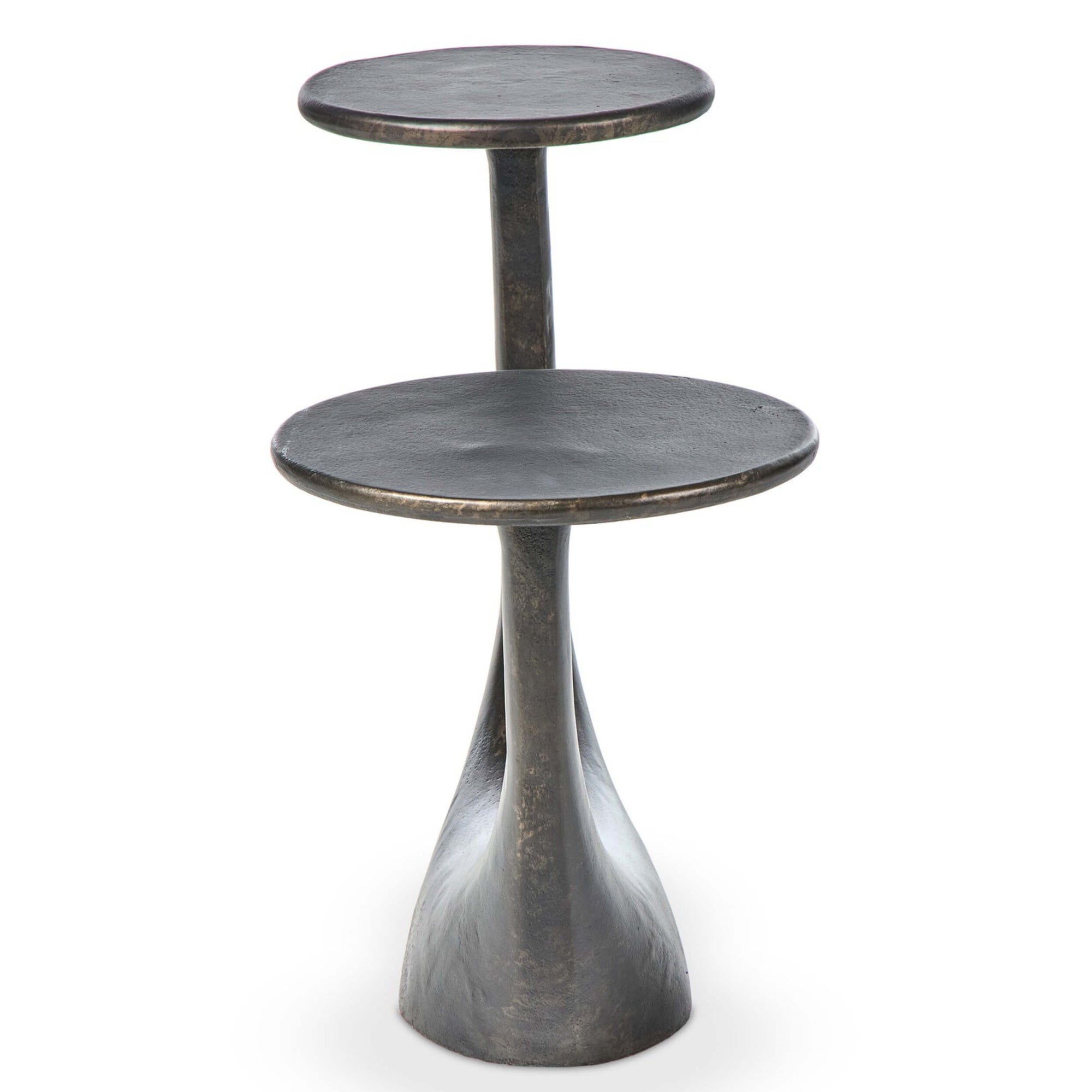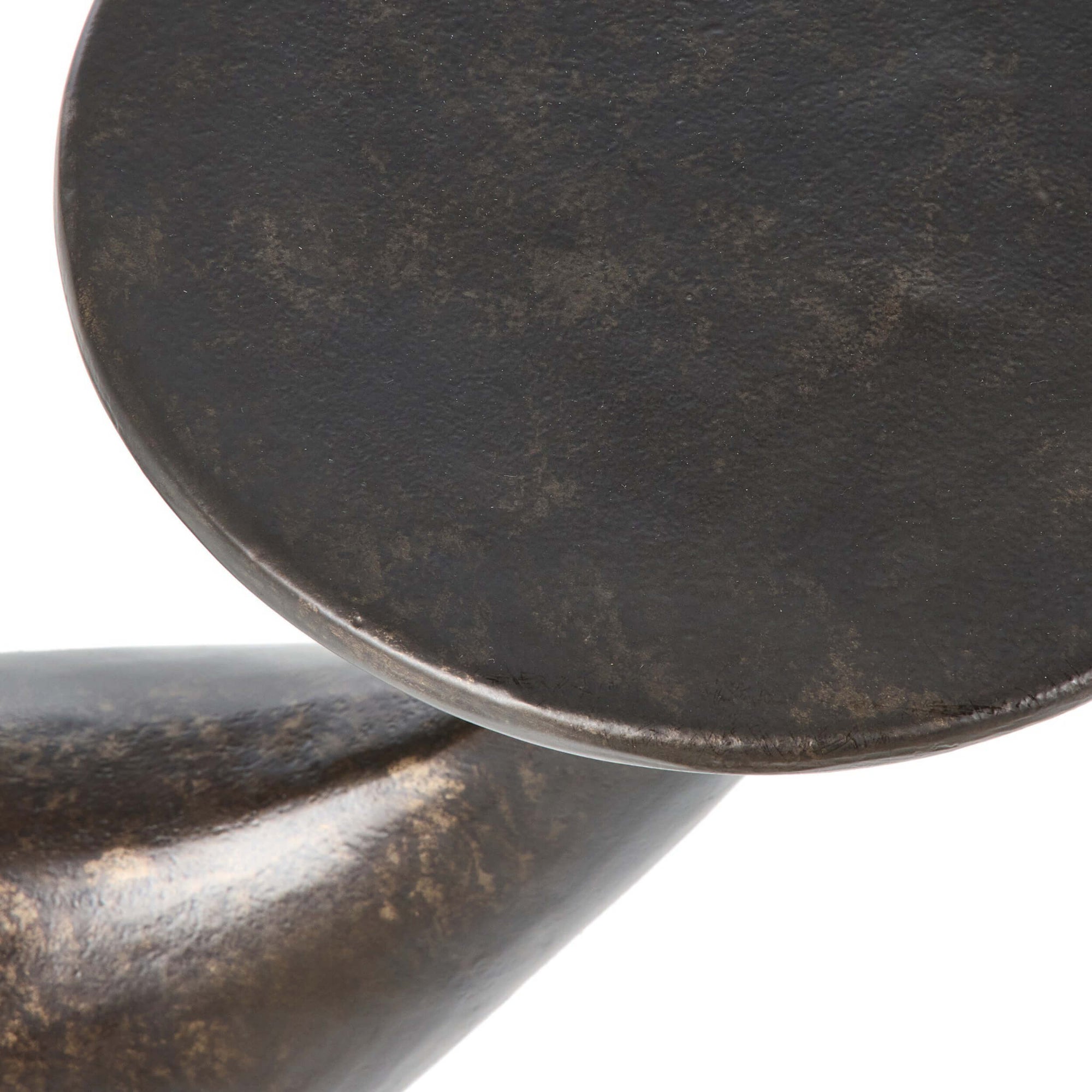 The Torrid End Table combines rugged charm with functional design. Crafted from distressed metal with a bronzed finish, its organically shaped form adds texture and warmth to any space. Featuring two thoughtfully sized tabletops, it offers convenient surfaces for your drink, favorite book, or decorative accents. The unique silhouette and durable construction make this end table a versatile and stylish addition to living rooms, bedrooms, or reading nooks, effortlessly blending industrial edge with everyday practicality.