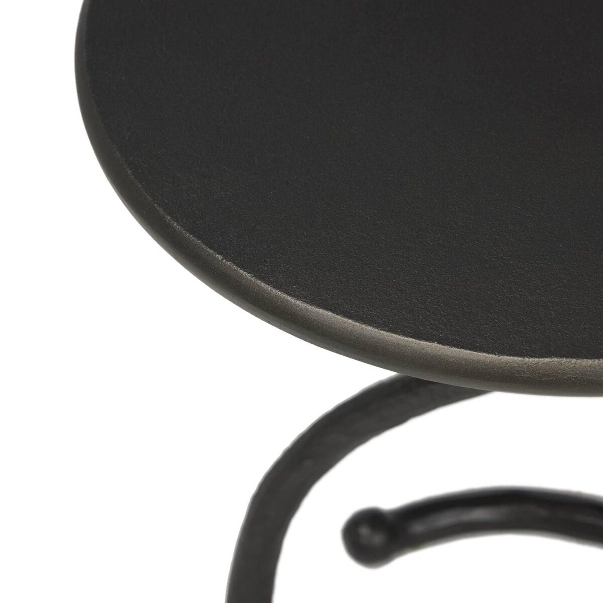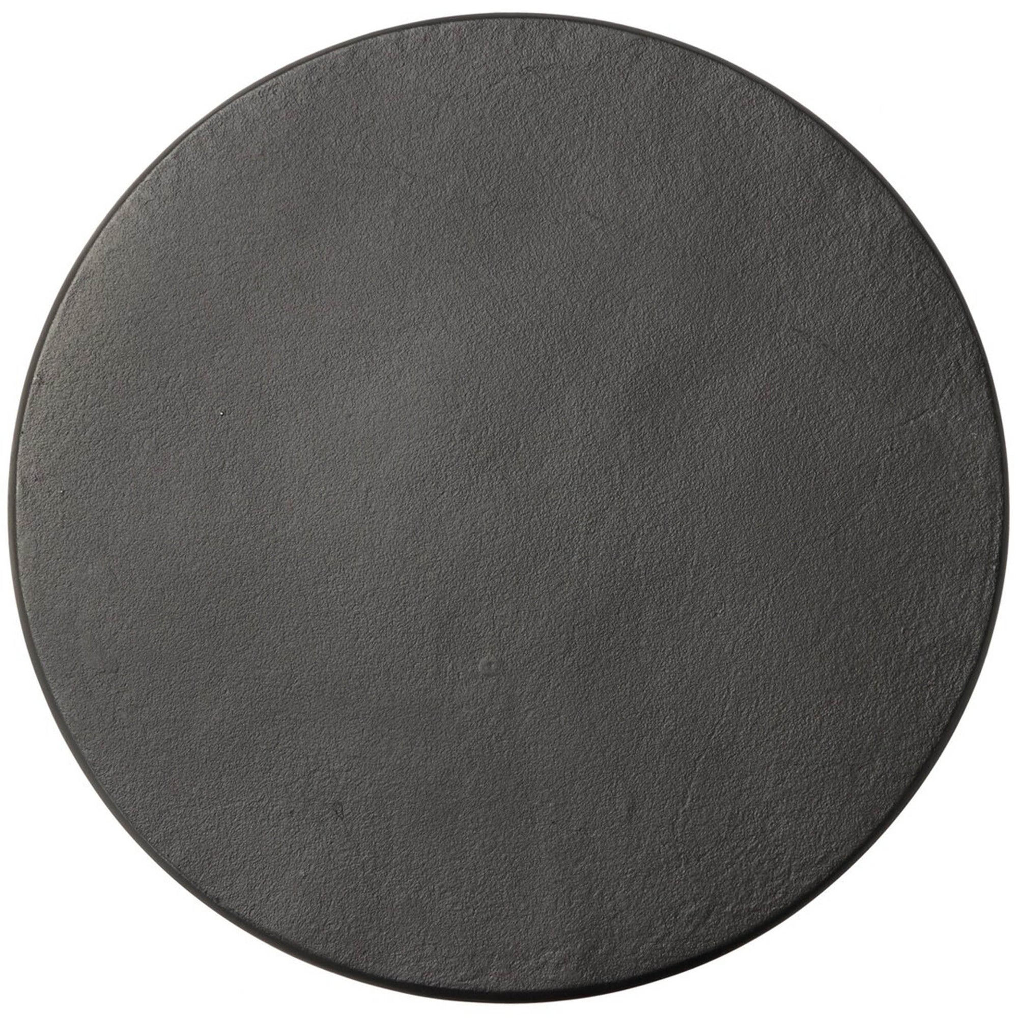 - Cast aluminum top with sculptural iron base
