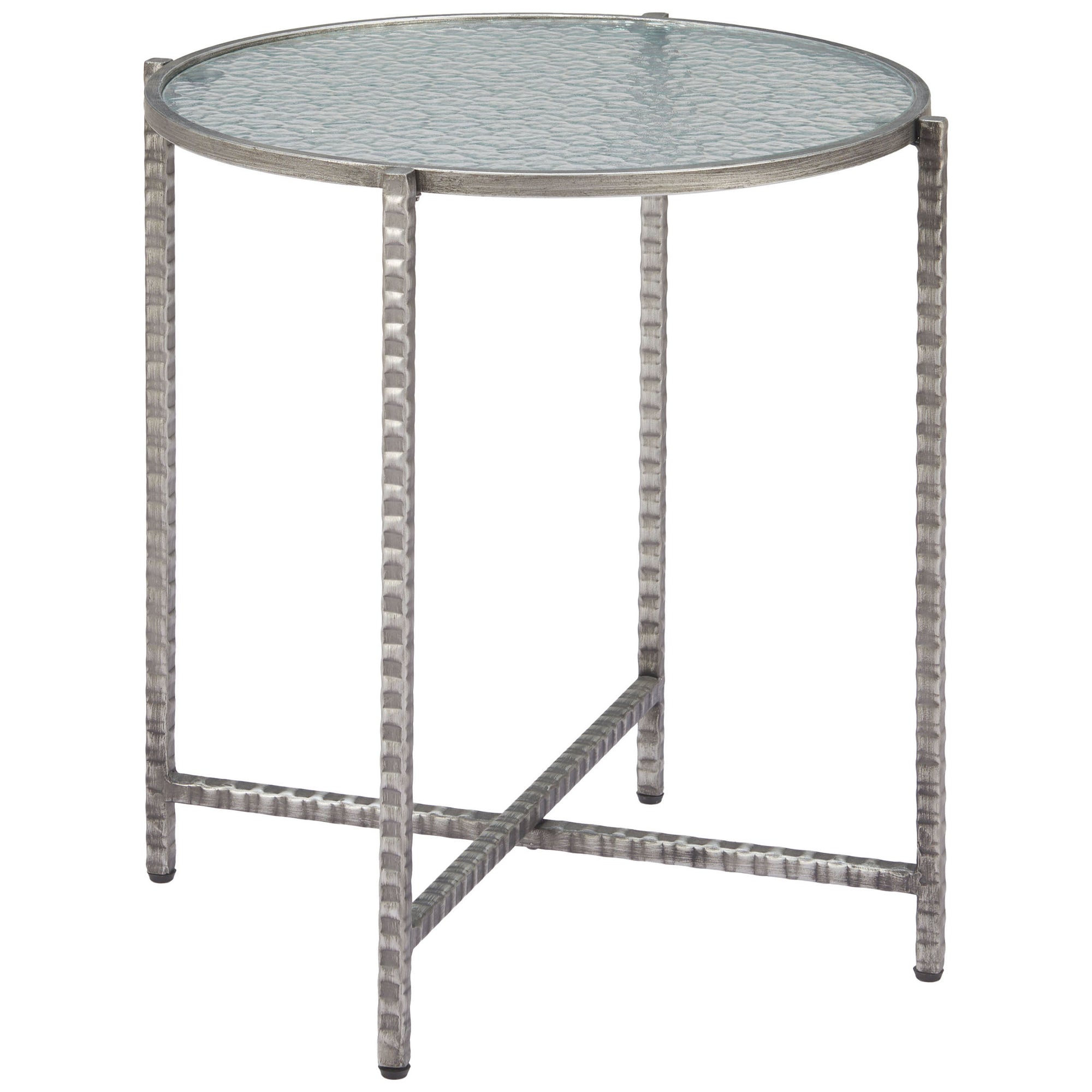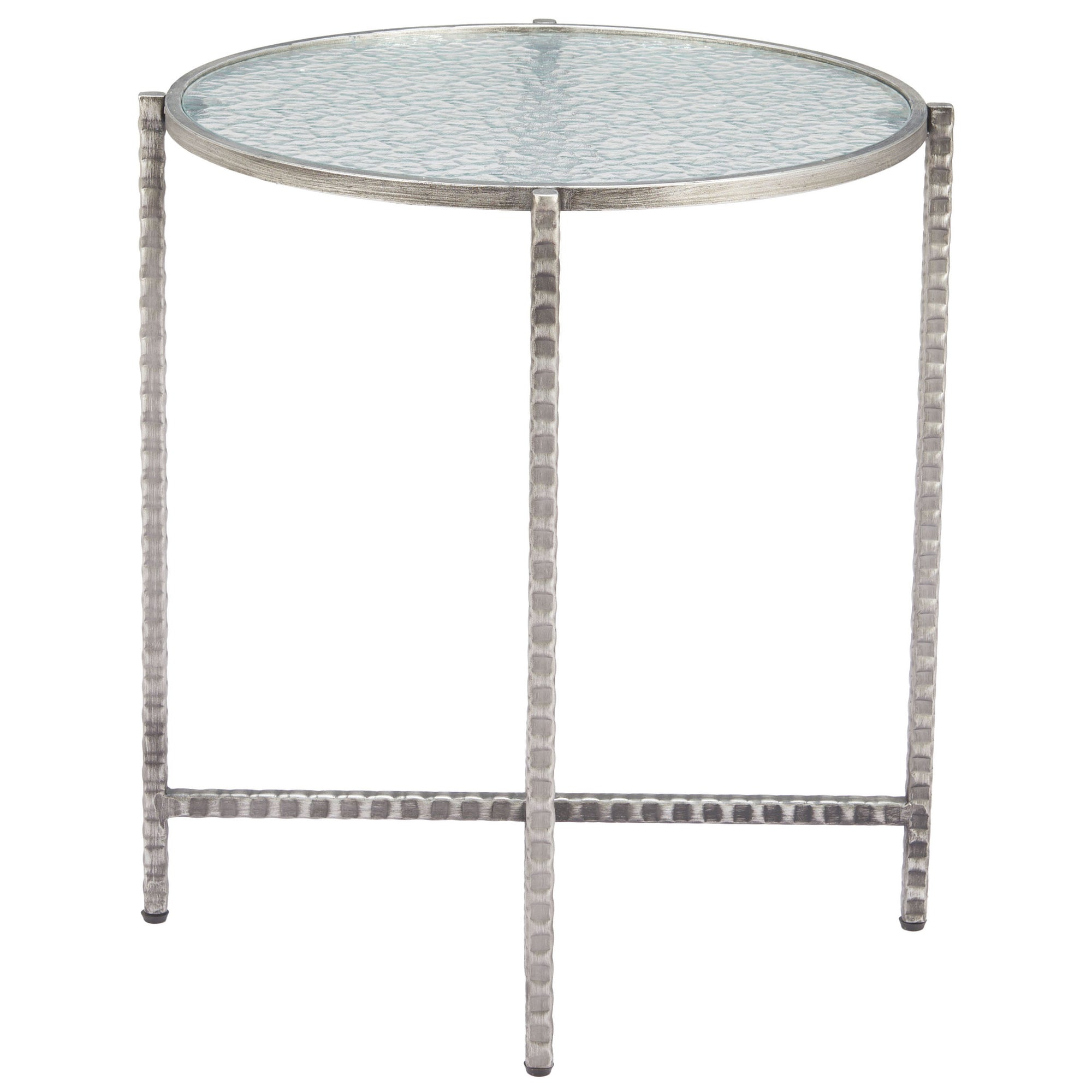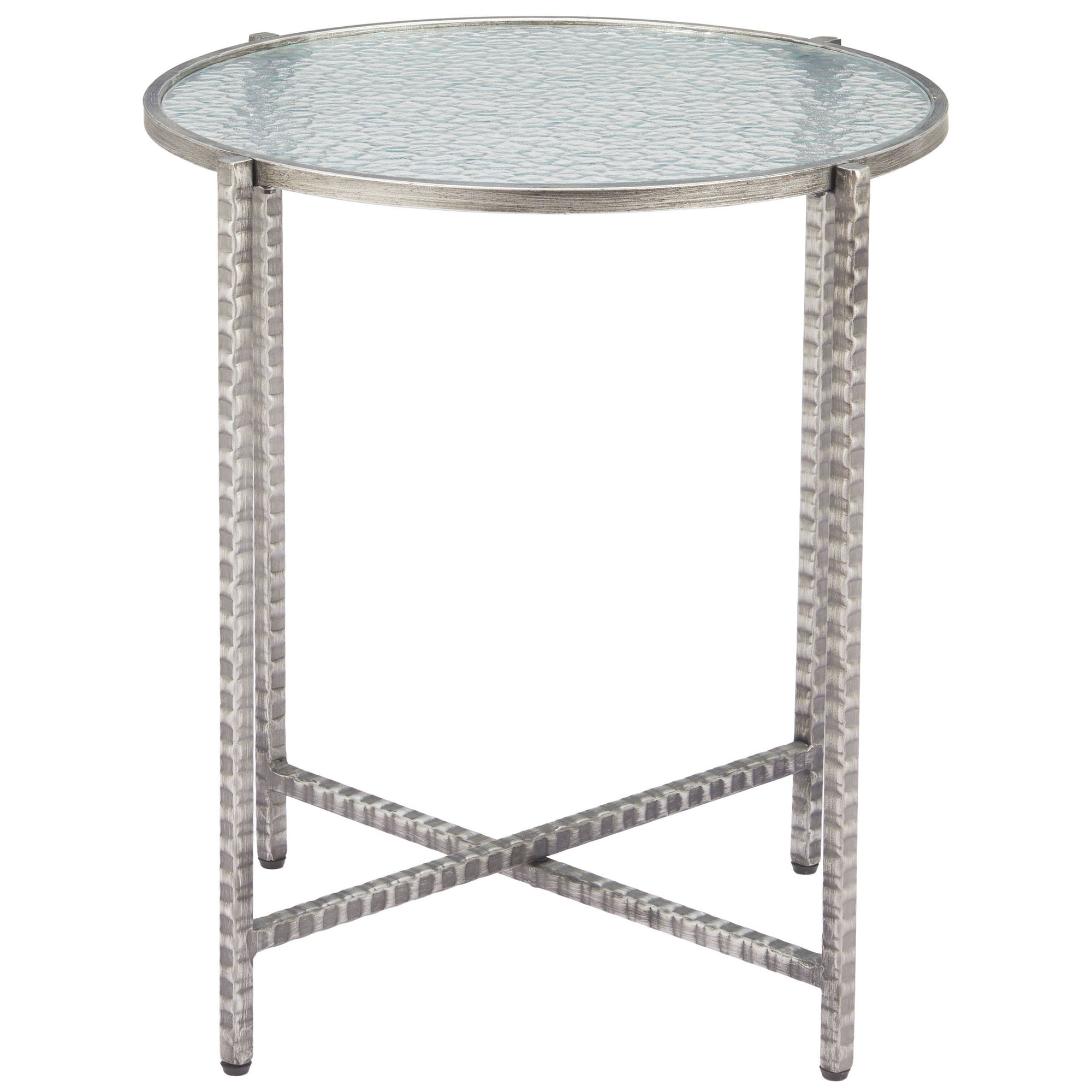 The Vetro Side Table adds a touch of modern elegance to any space. This chic accent piece features a unique rippled glass top, which creates a captivating visual texture and reflects light beautifully. The top is supported by a durable, hammered steel base finished in a sleek silver that enhances its contemporary appeal. Perfect for hospitality use or as a stylish end table in a living room, the Vetro Side Table effortlessly adapts to various settings, combining artistic flair with functionality.