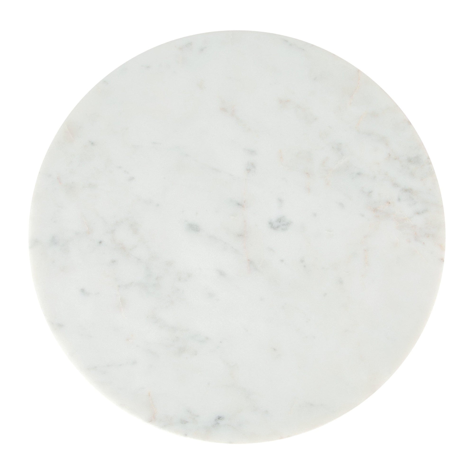 The Woozy Side has a raw marble top and a cast aluminum base. This side table looks great in any space: glam, modern, boho Chic, or deco.