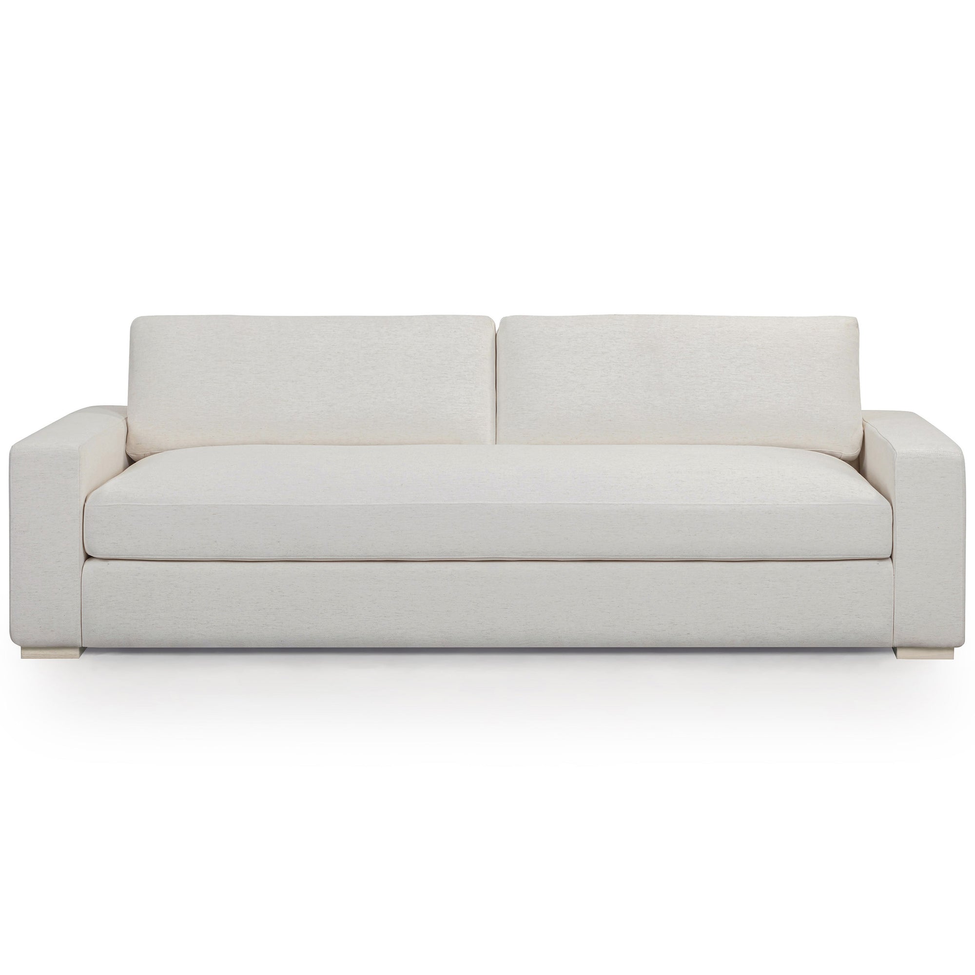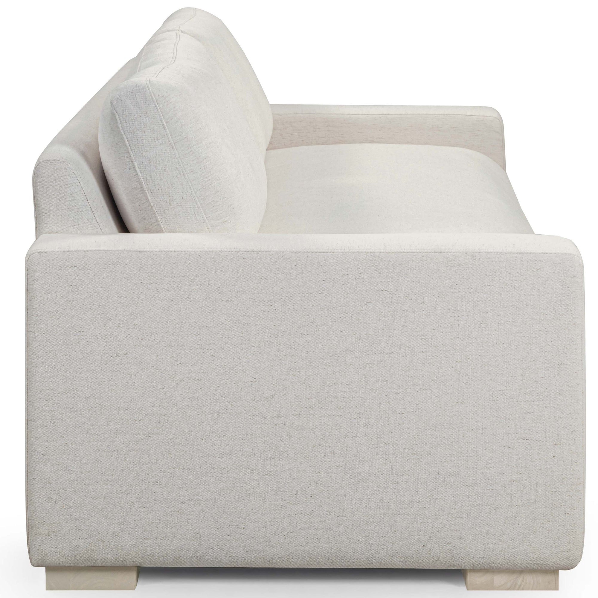 The Beckham Sofa wraps you in ultra-luxe comfort with its deep, enveloping seat and high-support cushions built for everyday lounging. This classic silhouette is grounded by thick padded arms and solid whitewashed wood legs, while modern fabrics bring a chic, versatile finish. The upholstery is made of recycled plastic bottles and features easy-clean, water-repellent performance fabric.