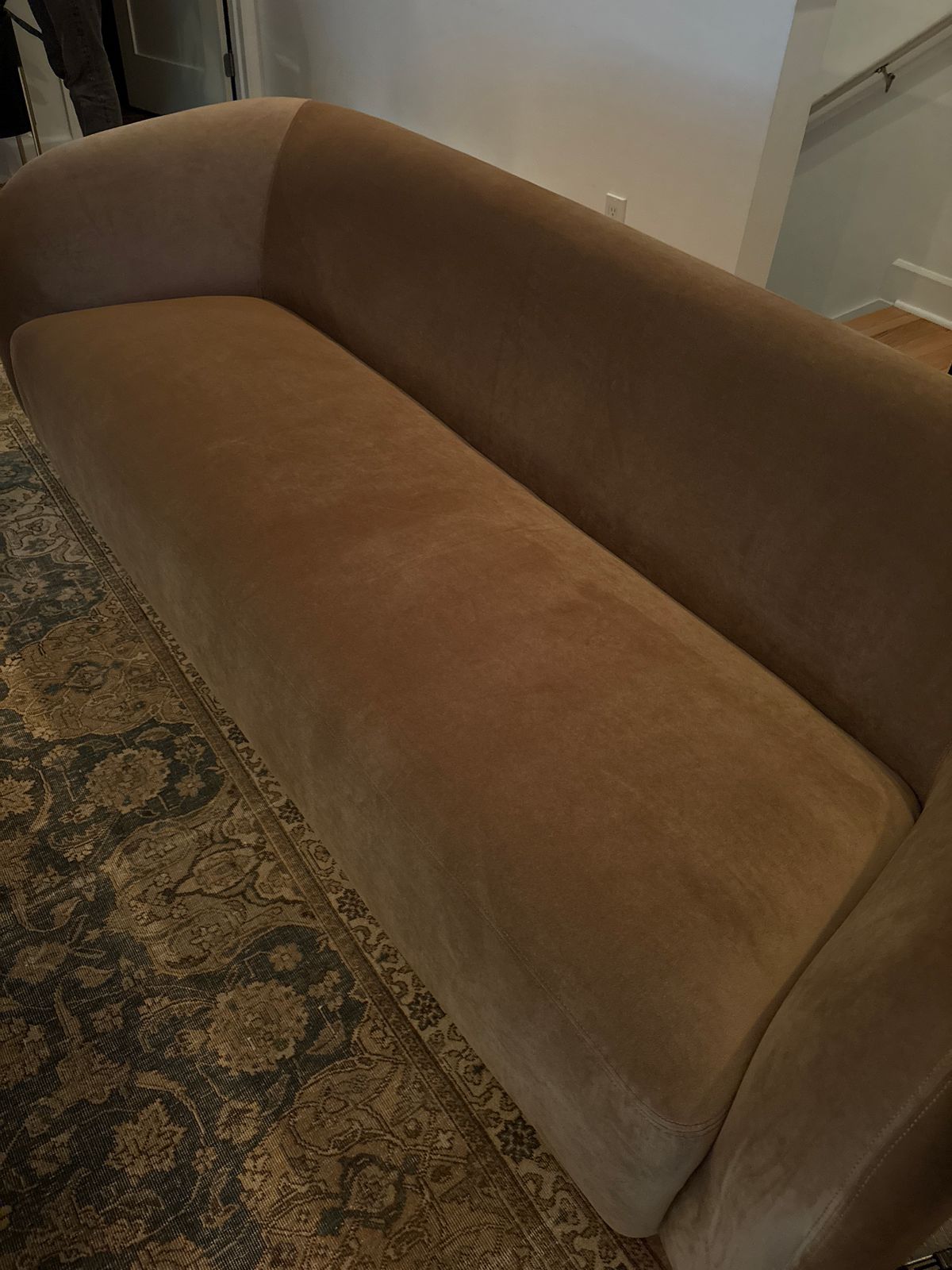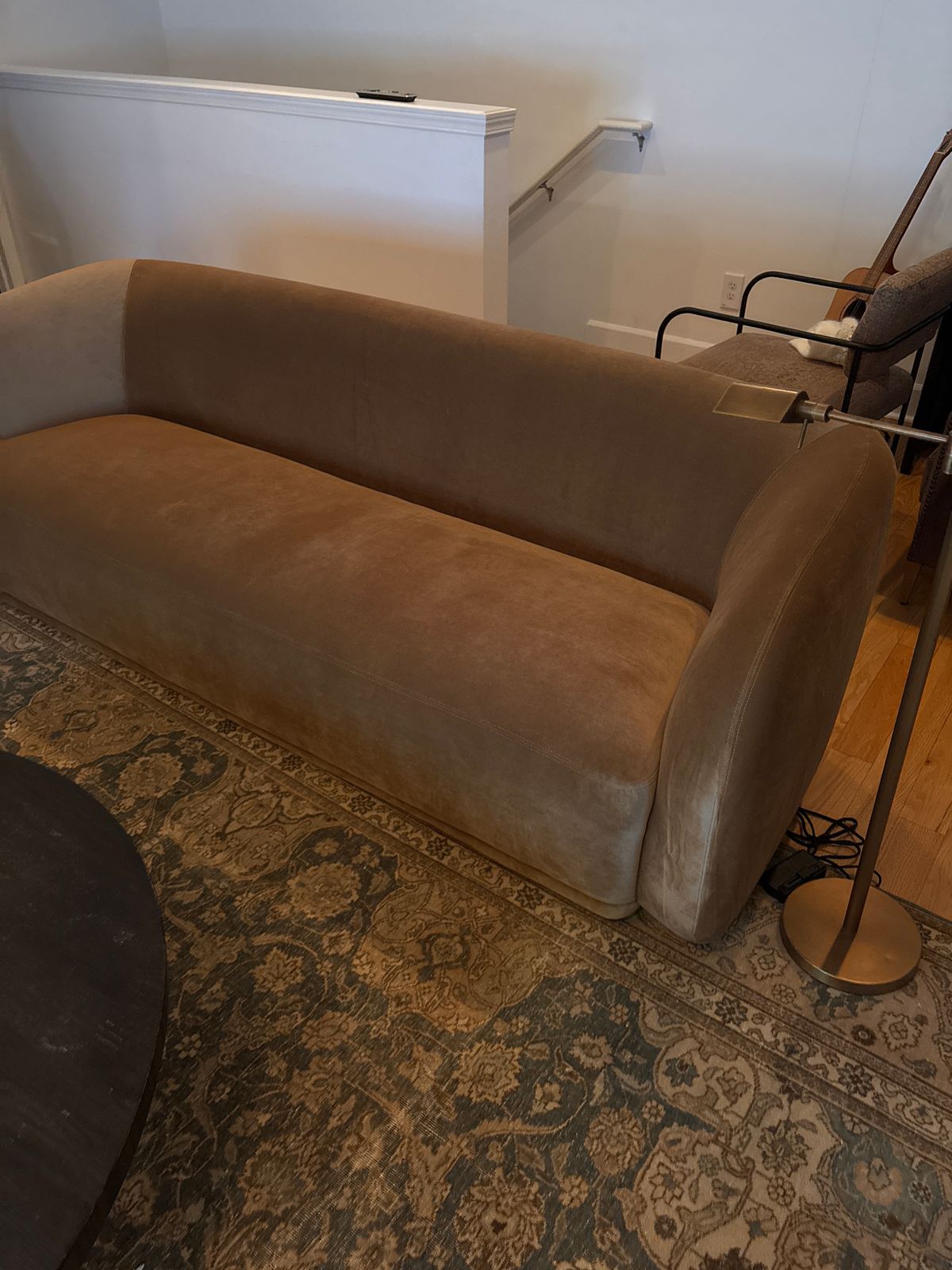 We purchased this sofa from a designer and have had it for about a week. I don’t think I’ve ever had a less comfortable sofa. It’s so firm that it causes discomfort against pressure points. It’s a very upright seat and I have to get up after a bit as my tailbone starts to hurt. Same for my husband. I will say it’s beautiful and deeper in color than the photos online (and less orange).