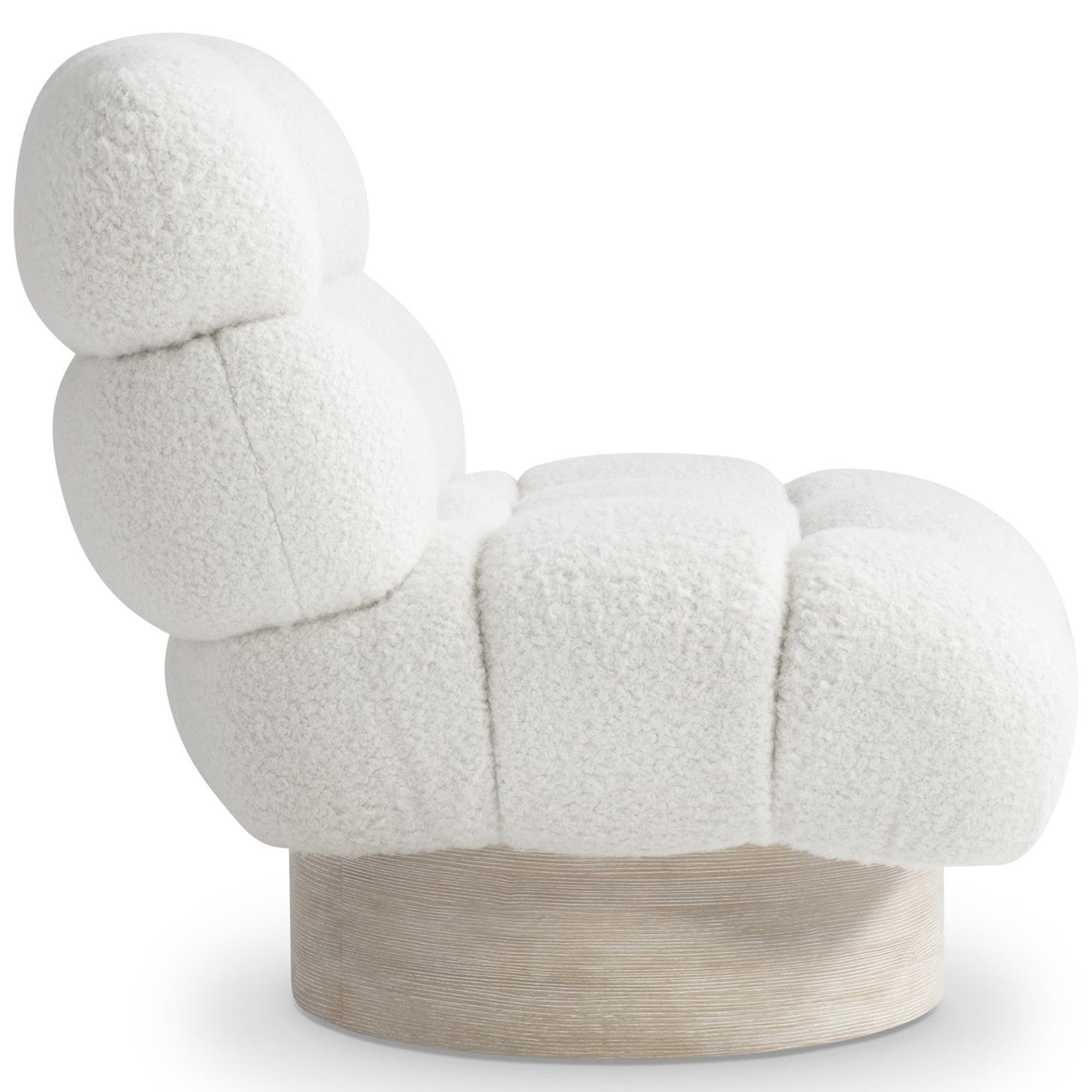 The Nico Swivel Chair blends curves and geometry in a distinctive silhouette. Deep biscuit tufting enhances the plush comfort, while the custom wood swivel base adds a tailored finish and smooth rotation. Fabric is only available as shown.