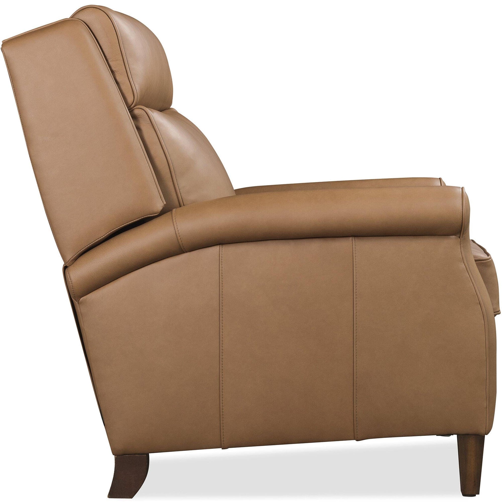 The Randall Leather Power Recliner blends plush support with understated sophistication in Billows Mushroom semi-aniline top grain leather. This tailored piece features a discreet pop-up headrest, rolled arms, and a bustle-style back, all elevated on tapered dark wood feet. Equipped with power recline and integrated USB charging, it delivers everyday comfort with broad design versatility for any living space.