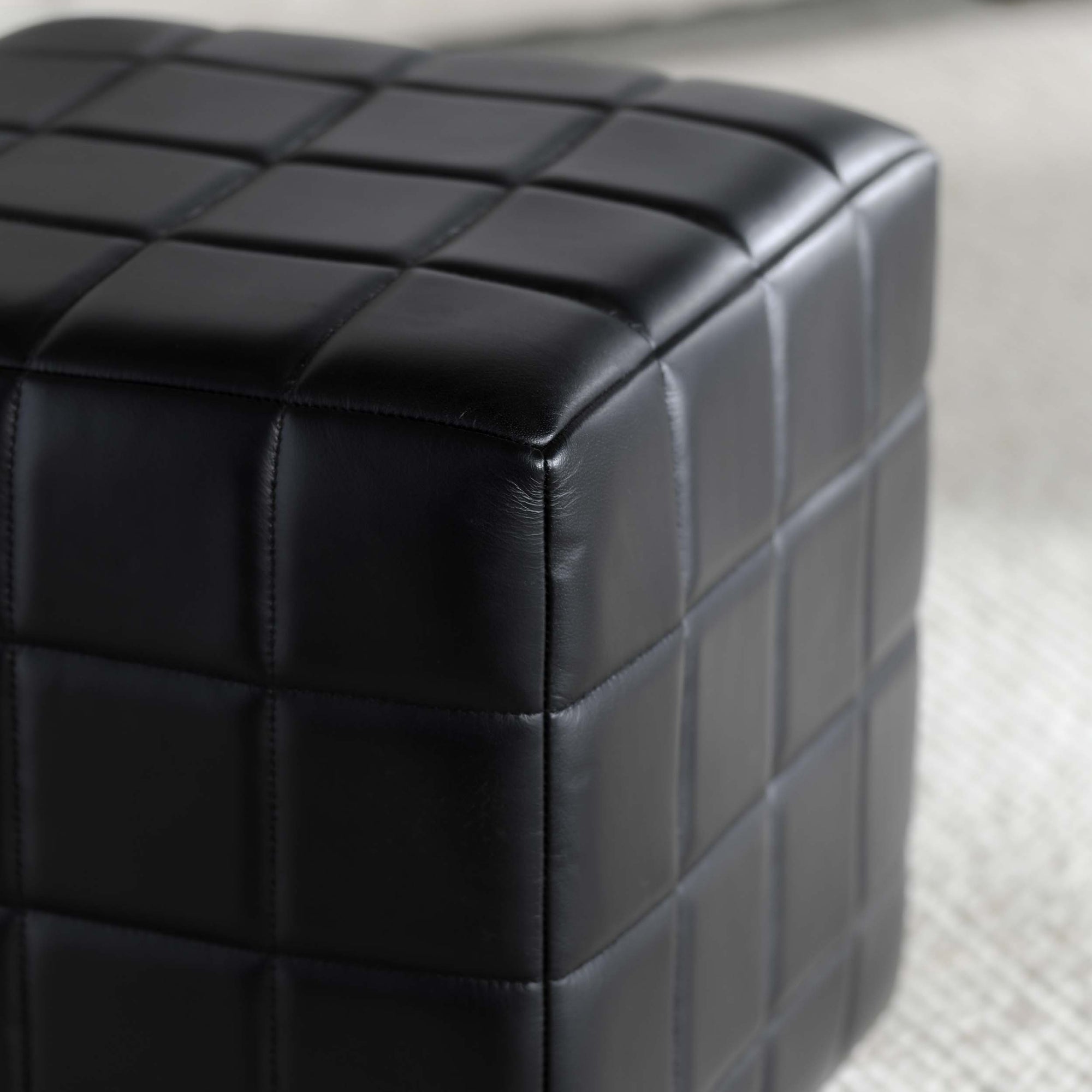 The Carlo Leather Square Ottoman, Jet Black, combines timeless style with versatile functionality. Upholstered in rich top-grain leather, its biscuit-tufted design adds texture and sophistication. Ideal as a footrest, extra seating, or accent piece, this ottoman brings modern elegance and practicality to any space.