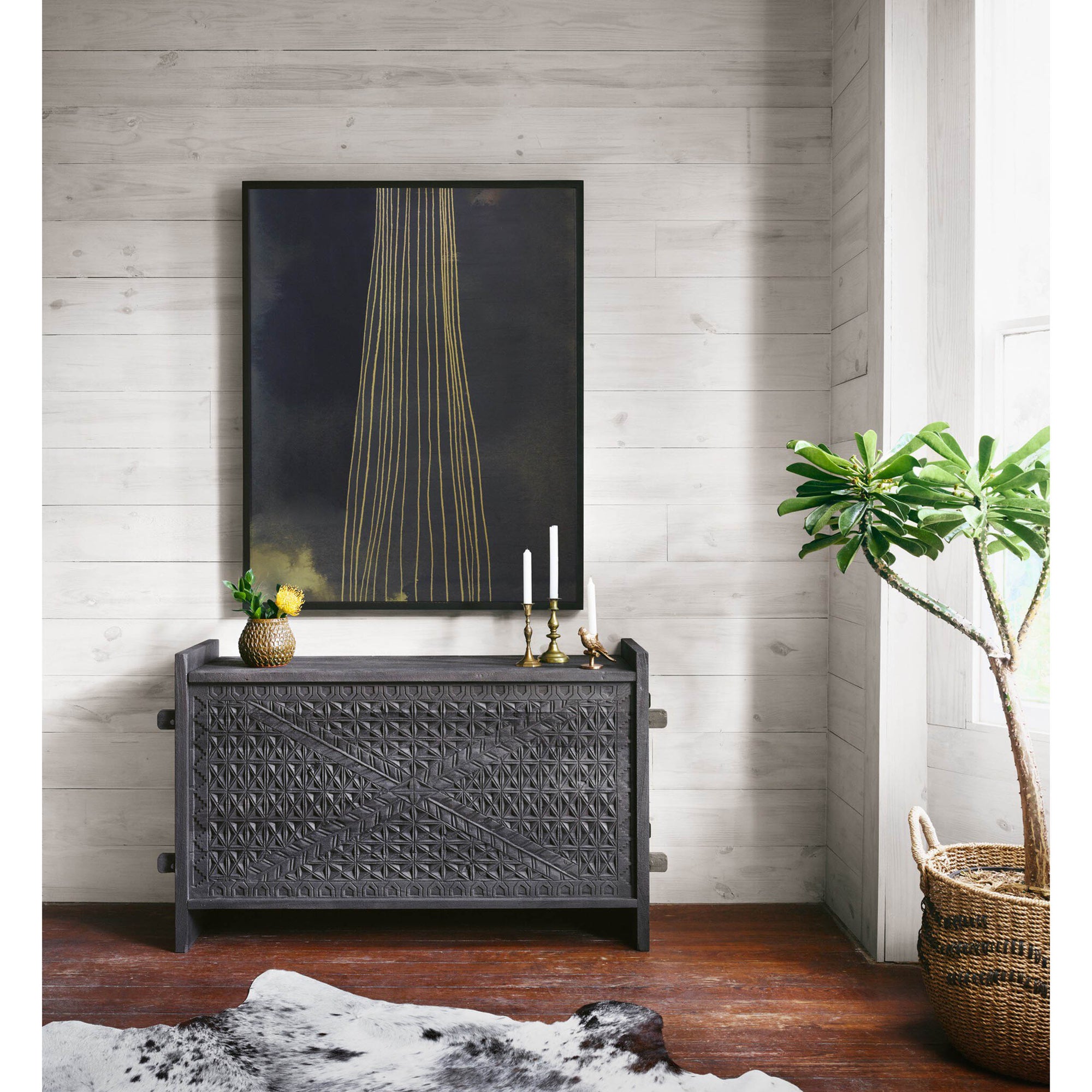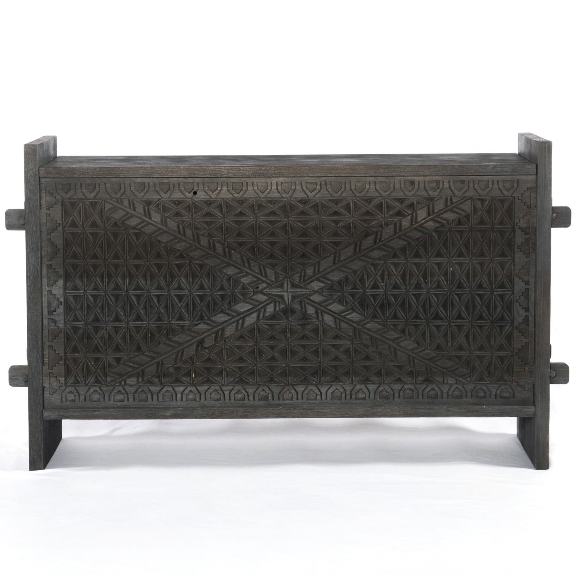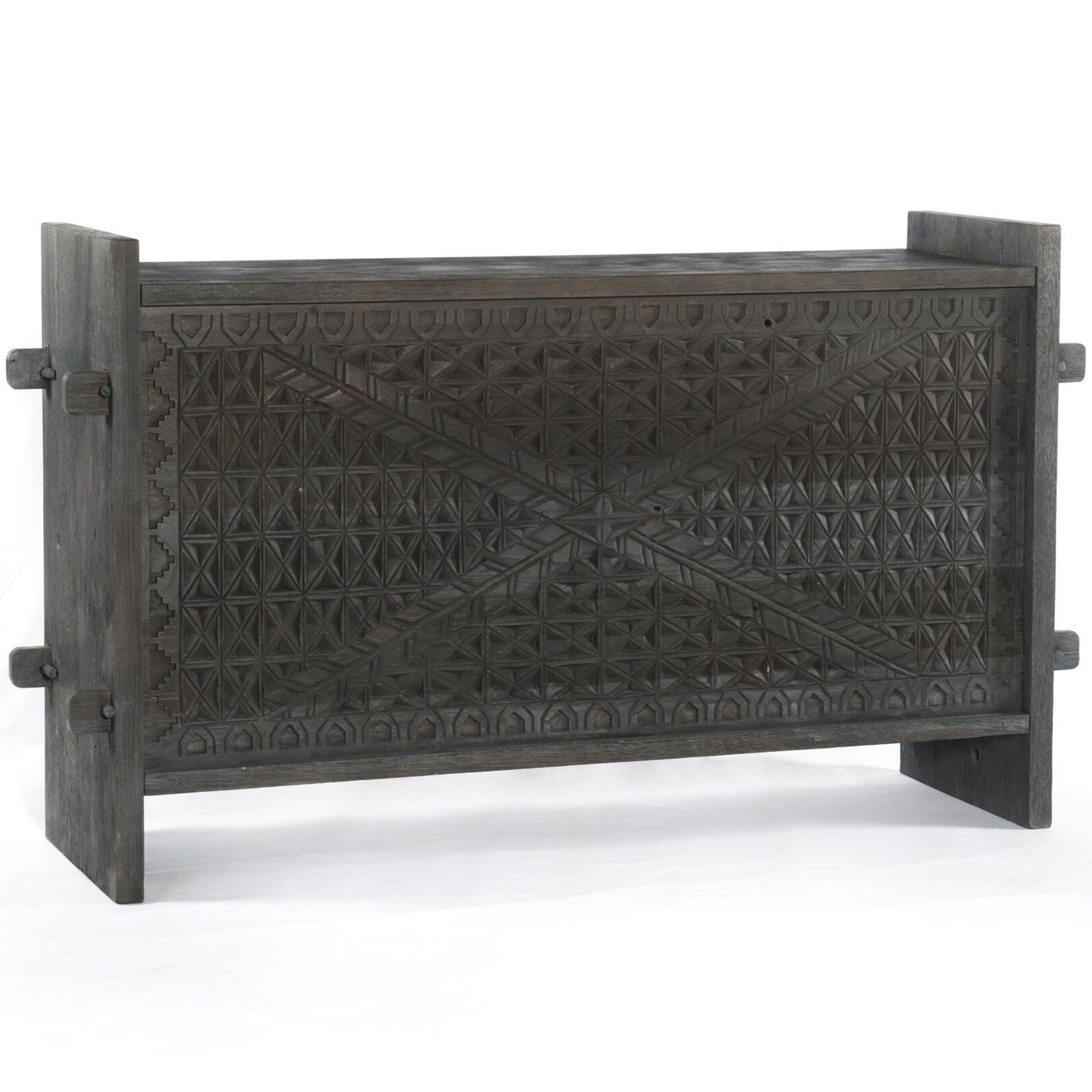 The Columbus Trunk Console blends the beauty of reclaimed wood with timeless craftsmanship. Inspired by authentic Indian antiques, the intricate hand carving showcases fresh geometric patterns that bring a modern touch to its global-rich tone. With its generous size and versatile rectangular silhouette, this conversation-starting console offers functional storage while enhancing any room in the home.