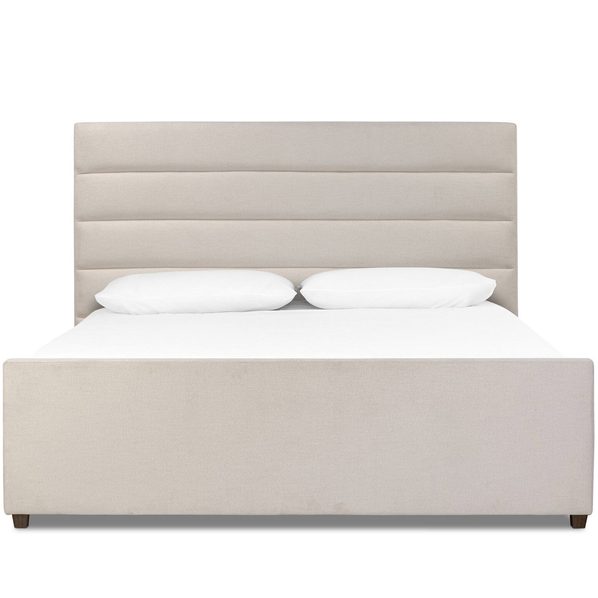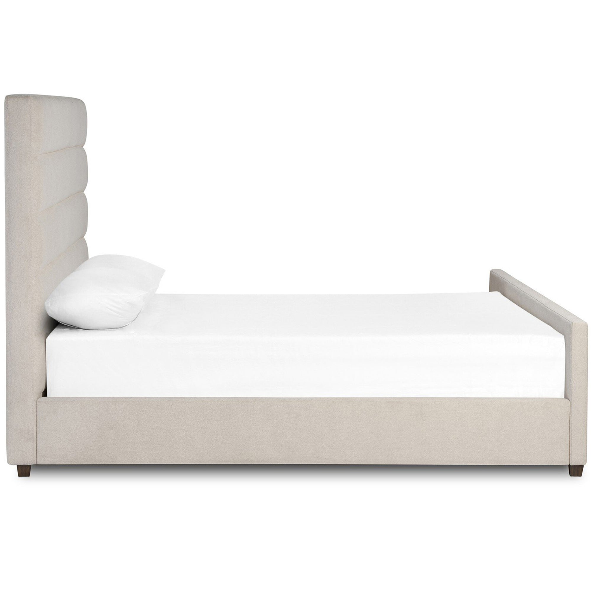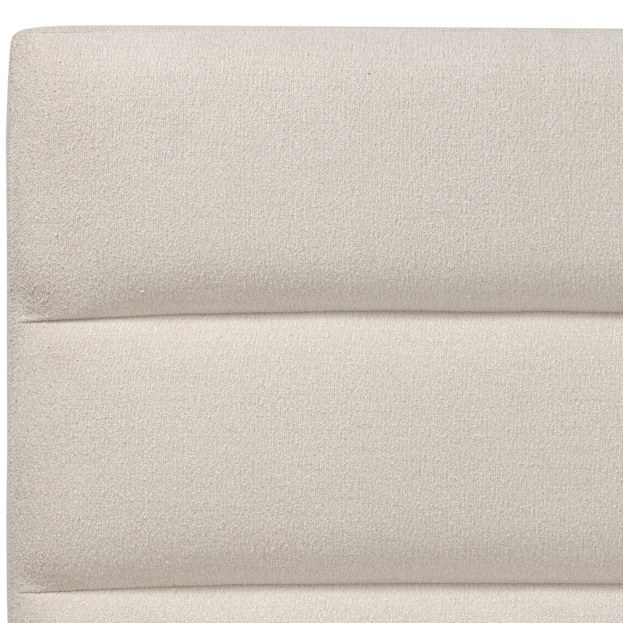 The Daphne Bed brings a modern, textured touch to the bedroom with its horizontal channeling and boucle-like upholstery. Crafted from performance fabric that resists stains and wear, this bed combines elegant lines with everyday durability. A fully upholstered frame and solid parawood base provide both style and strength, while its slat roll construction eliminates the need for a box spring.