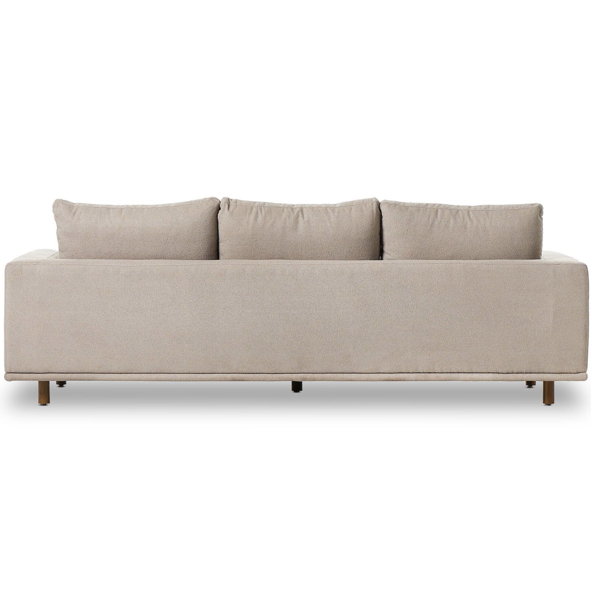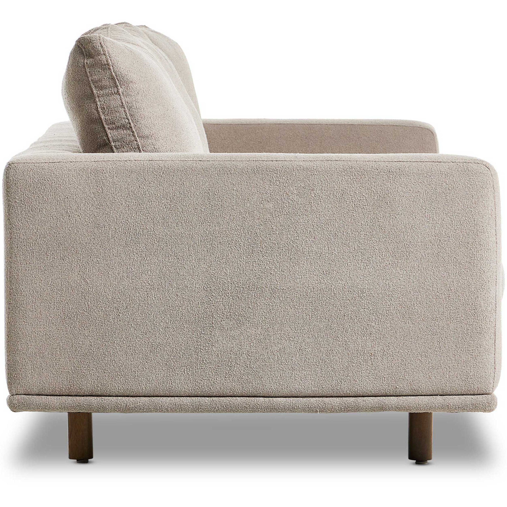 The Dom Sofa blends contemporary lines with inviting comfort. Textural polyester upholstery is pristinely tailored with clean track arms, while loose feather-blend back and seat cushions provide a soft, sink-in feel. Designed for both style and everyday livability, this four-seat sofa brings effortless sophistication to any space.