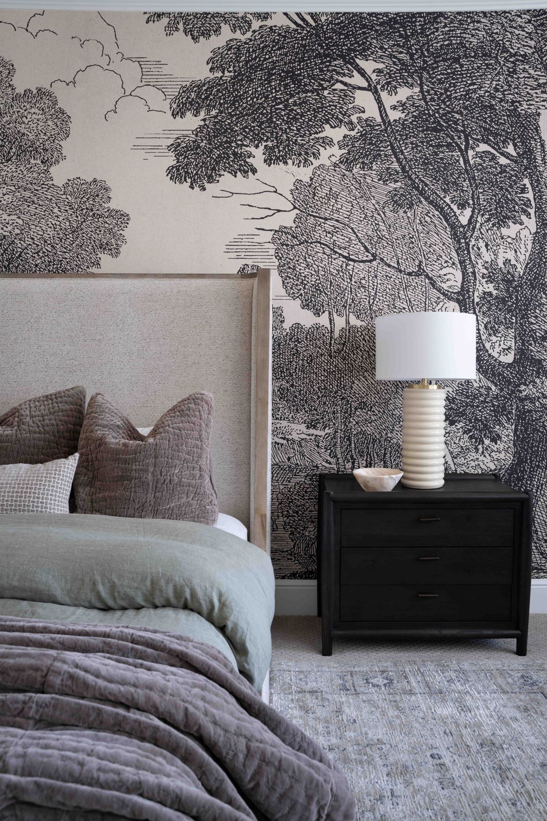 The Glenview Nightstand blends traditional design with a modern twist, crafted from smoked black oak for a rich, elegant finish. Inspired by classic spindle structure, this three-drawer nightstand provides convenient storage to keep bedside essentials close at hand. Its timeless design and spacious drawers make it both a stylish and practical addition to any bedroom.
