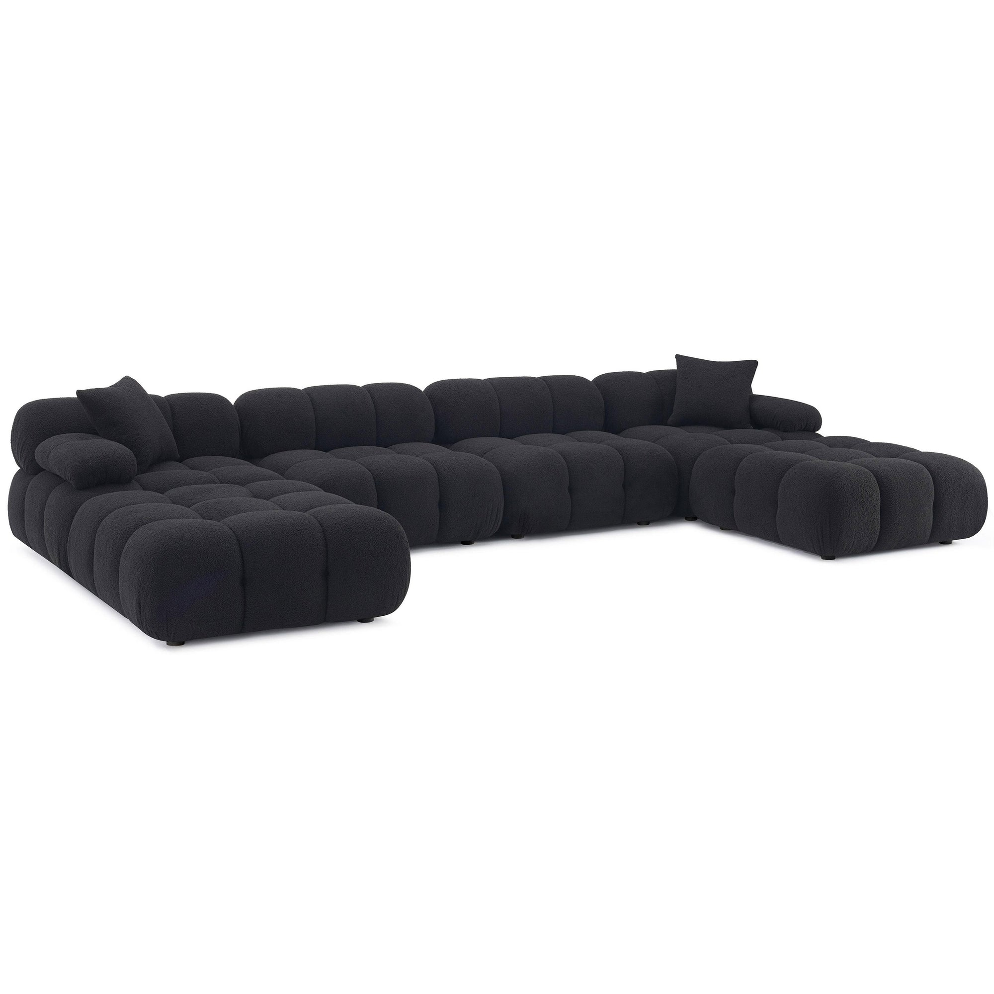 The Calliope 6 Piece Modular U-Sectional features ultra-soft vegan shearling upholstery and a deep hand-tufted design that creates a pillowy, brioche-inspired silhouette. Its modular layout with detached movable arm cushions allows for endless configuration possibilities, making it easy to customize your space with comfort and style.