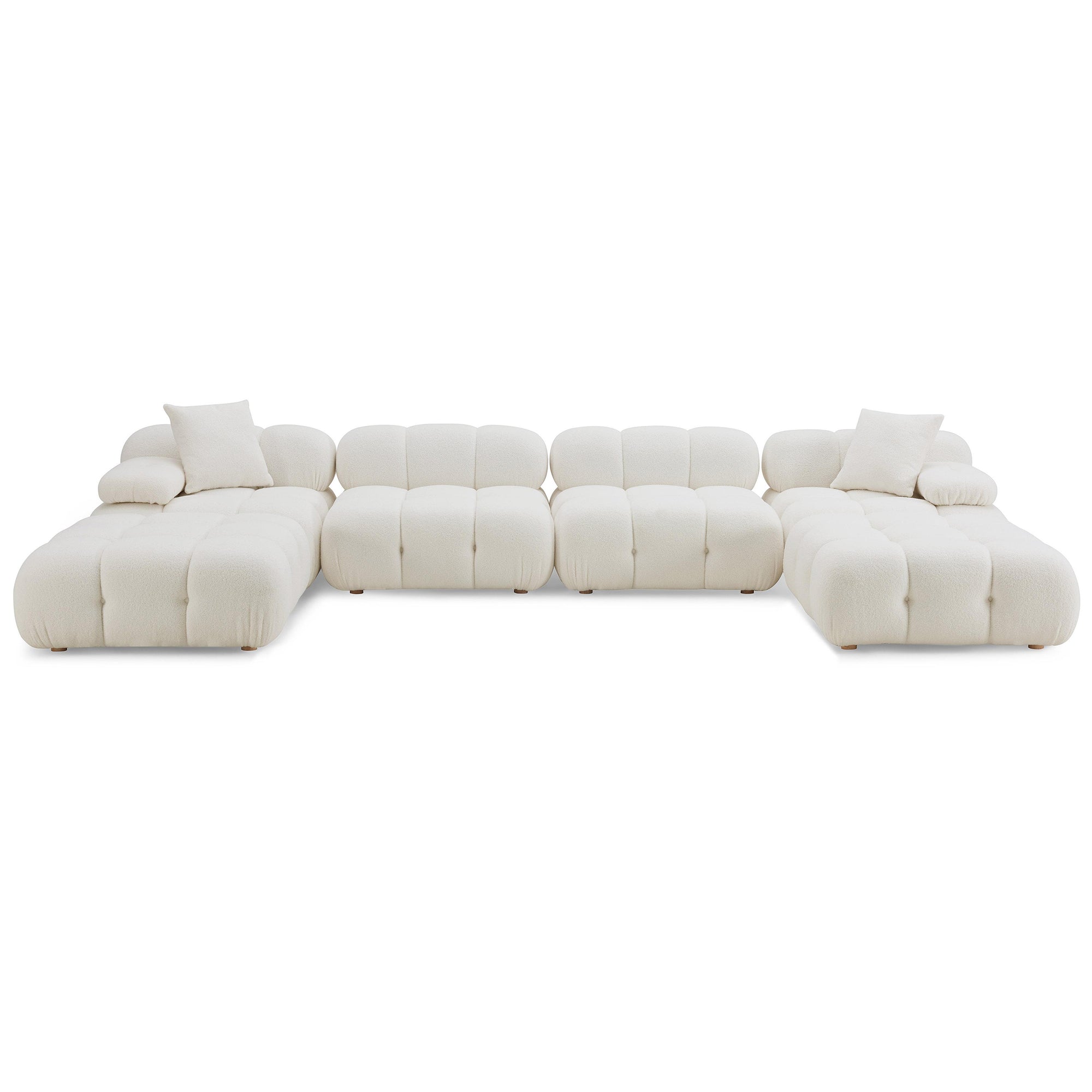 The Calliope 6 Piece Modular U-Sectional features ultra-soft vegan shearling upholstery and a deep hand-tufted design that creates a pillowy, brioche-inspired silhouette. Its modular layout with detached movable arm cushions allows for endless configuration possibilities, making it easy to customize your space with comfort and style.