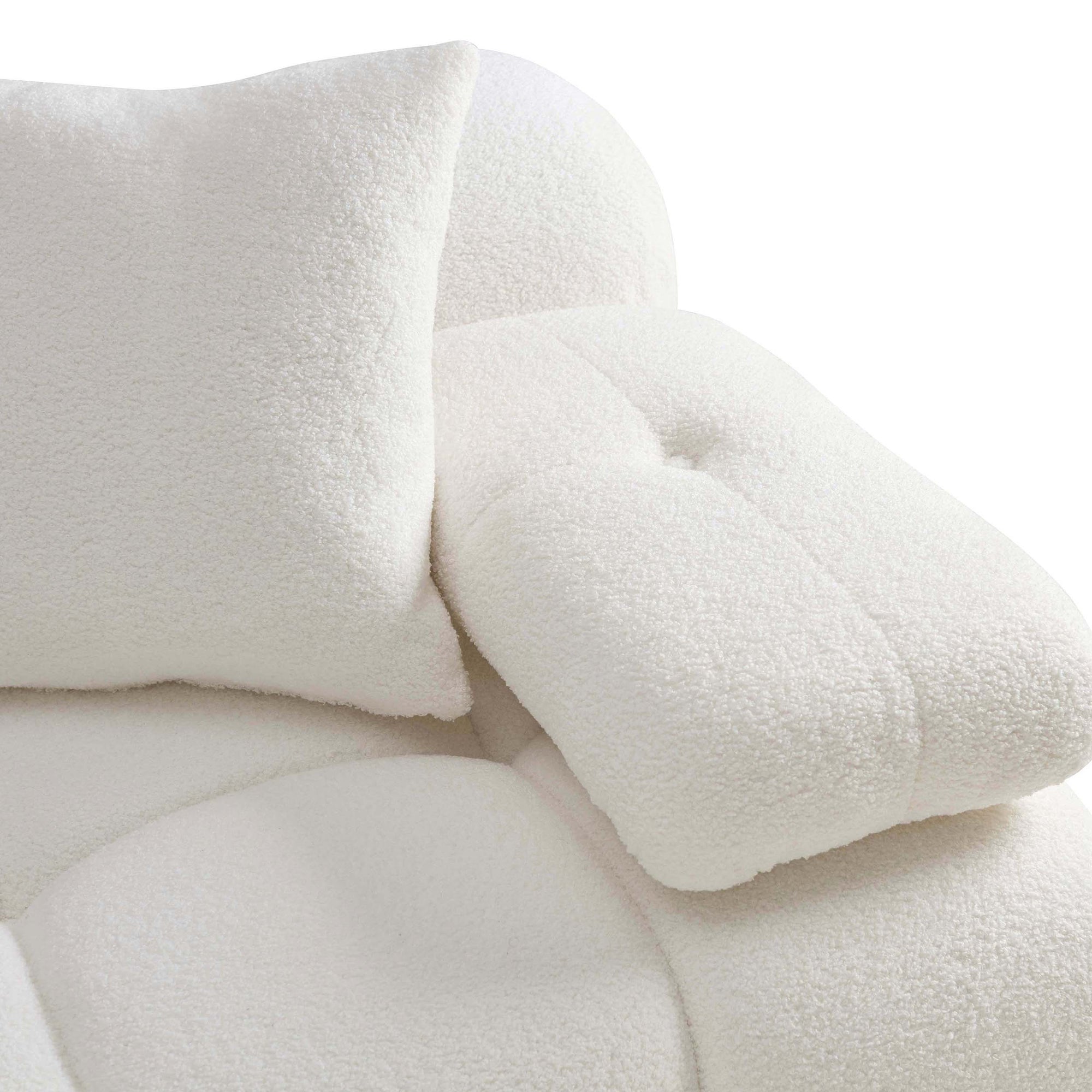The Calliope Modular Sectional blends unmatched comfort with versatile, contemporary design. Its ultra-soft vegan shearling upholstery and deep hand-tufted cushioning create a pillowy silhouette, while the modular layout allows endless configuration possibilities. Detached movable arm cushions provide flexible styling, making it easy to create the perfect sectional for your living space. Skillfully handmade, this sectional elevates both style and relaxation.