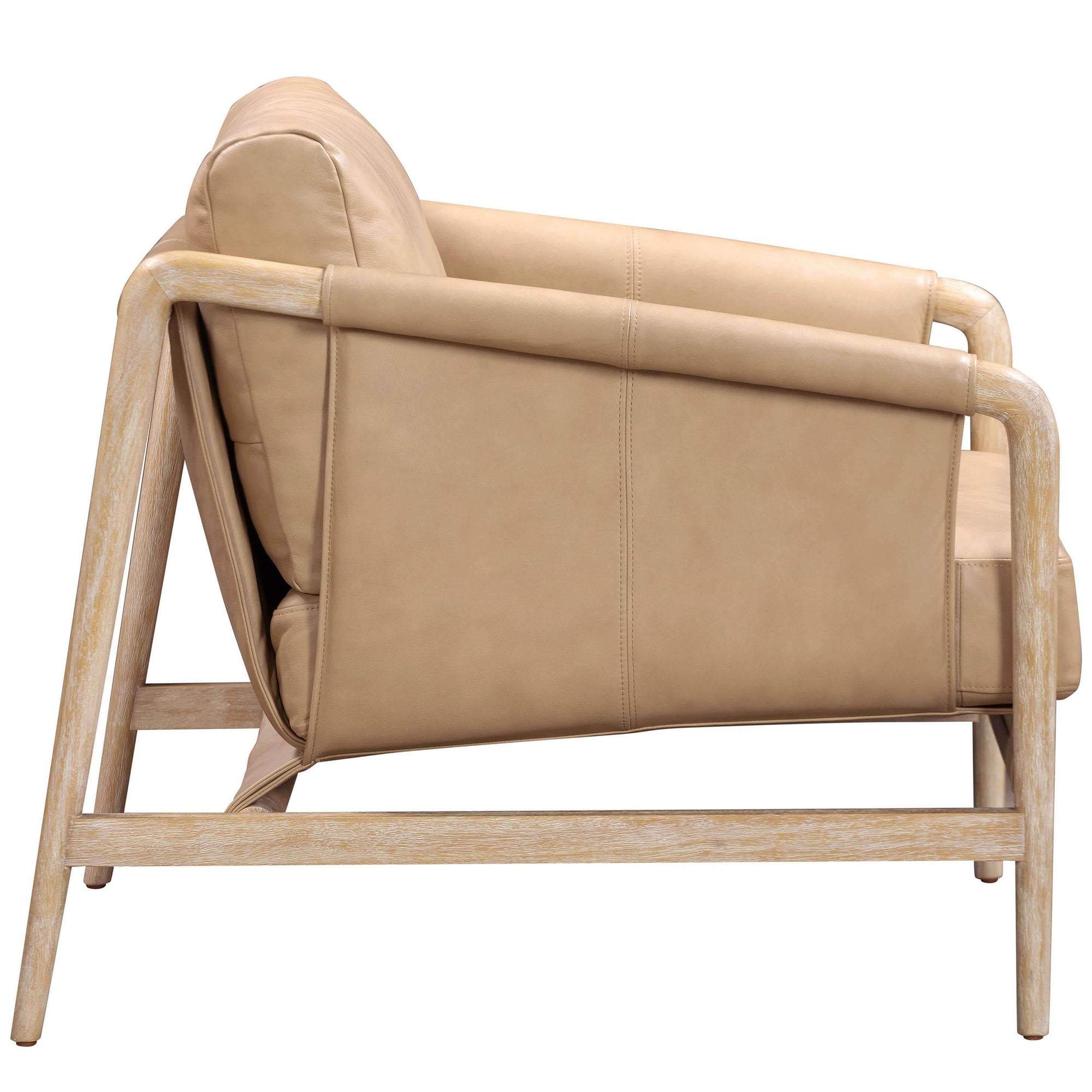 The Chakka Leather Chair delivers timeless comfort and craftsmanship with its lightly distressed top-grain leather and solid rubberwood frame. Its hand-brushed finish and feather–fiber blend cushioning create a plush and inviting seat. Padded arm slings add a relaxed touch, making this piece perfect for living rooms, lounges, or reading corners.