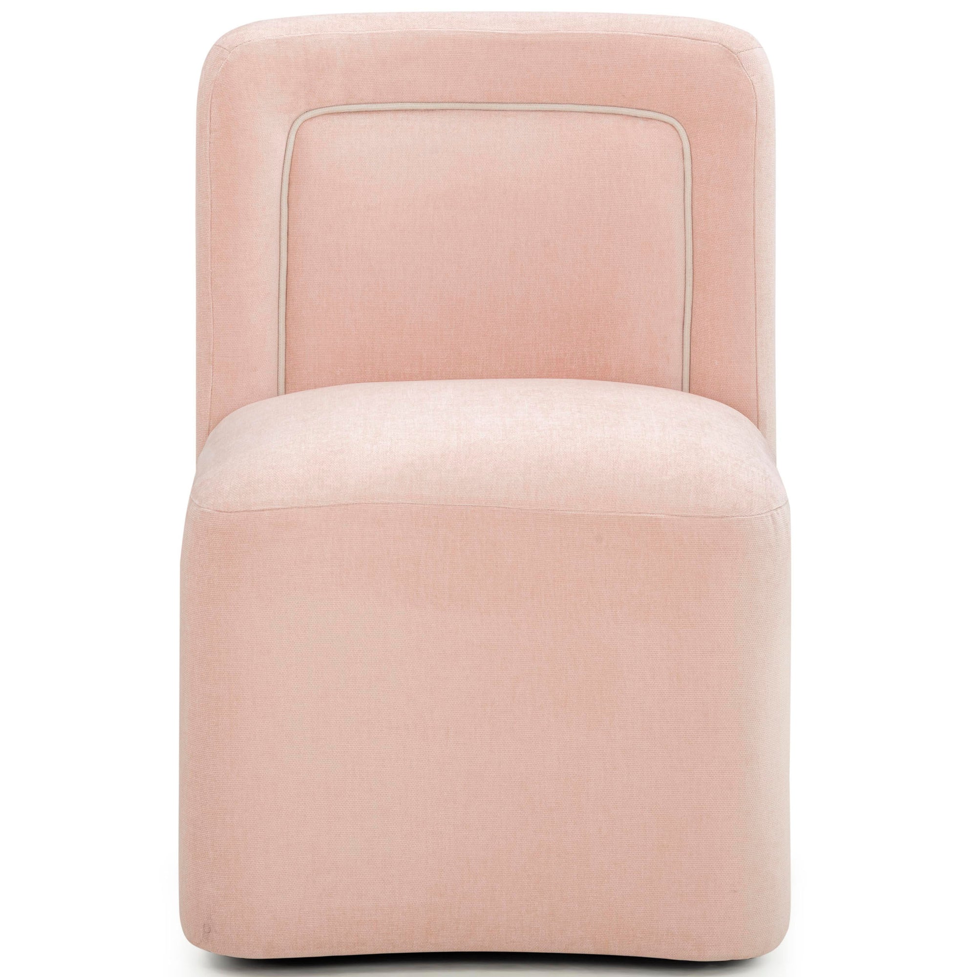 The Dolce Rolling Desk Chair blends modern style with everyday comfort, making your workspace effortlessly chic and inviting. It is wrapped in easy-clean, contract-grade fabric and filled with soft, fiber-wrapped foam, ensuring it feels as good as it looks. Hidden casters allow you to glide smoothly and seamlessly around your desk. Its sculptural design adds contemporary flair. This chair arrives fully assembled for immediate use.
