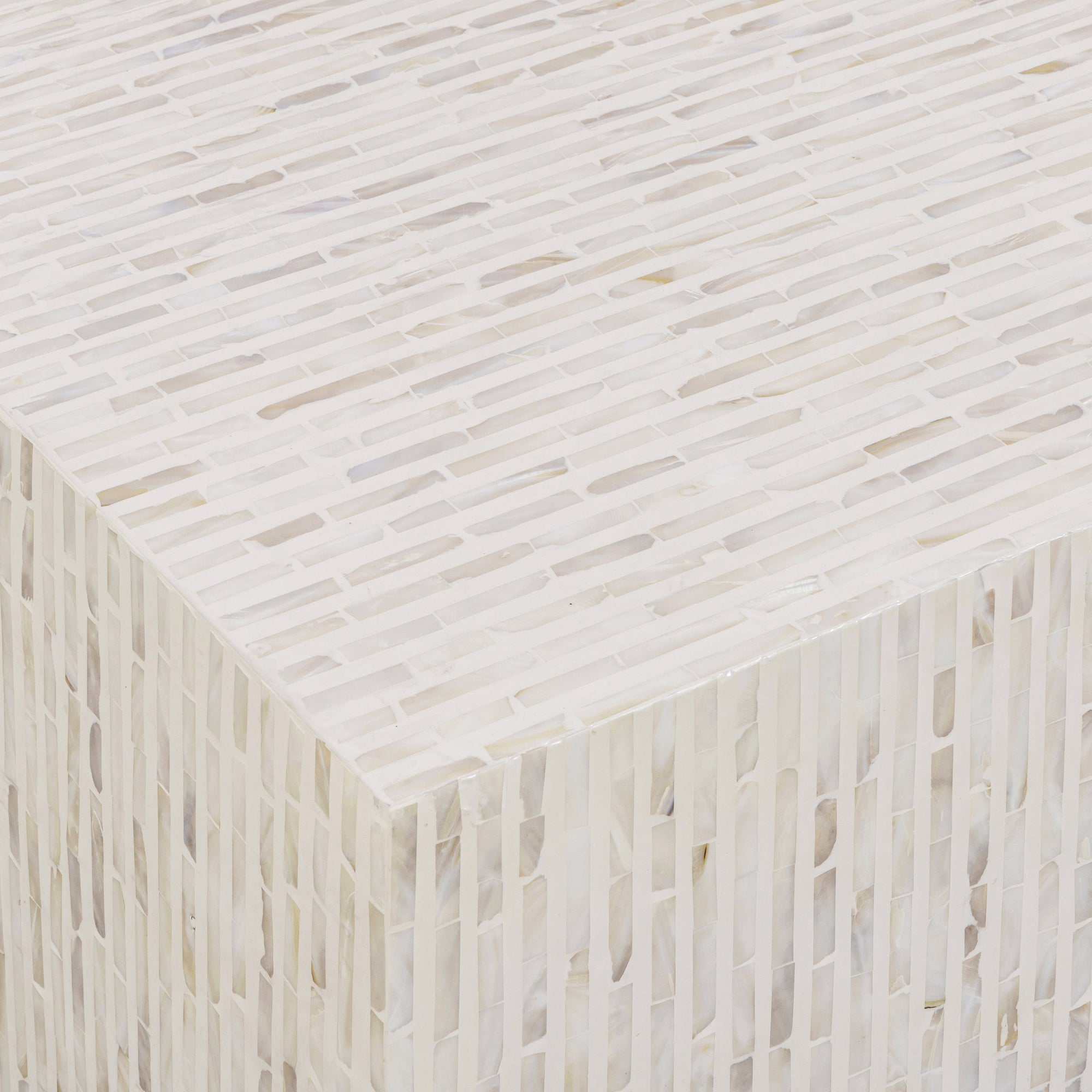 The Earl Rectangular Coffee Table sparkles with charm, showcasing a playful linear pattern that feels fresh and radiant. Hand-placed and hand-polished details create a surface rich in eye-catching texture, adding a sweet, uplifting glow to any room. This piece serves as a stunning focal point, perfectly balancing functional design with decorative flair to elevate your modern living space.