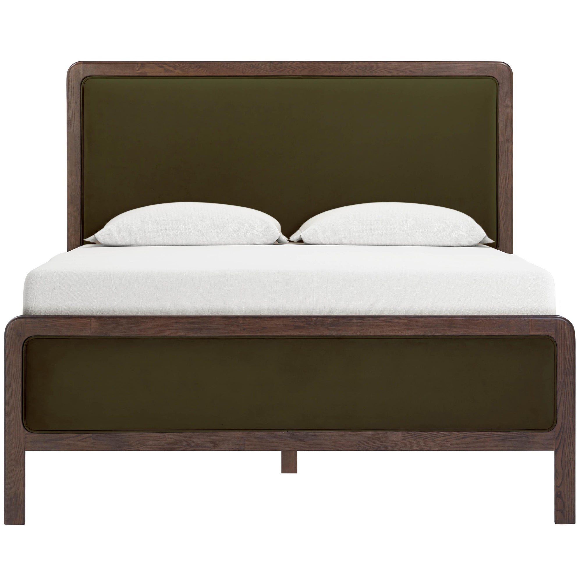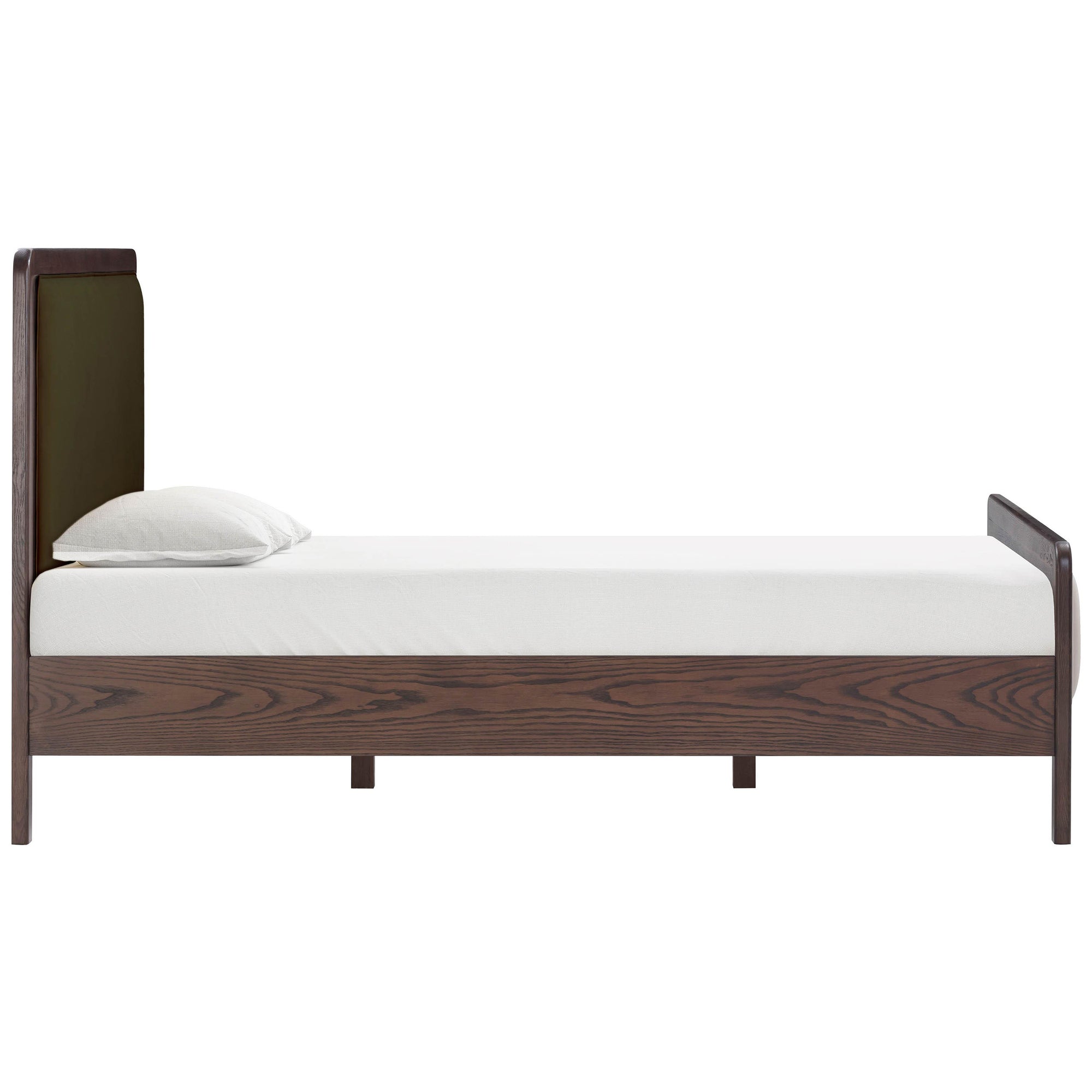The Hella Velvet Bed blends mid-century inspiration with modern refinement. Wrapped in soft matte velvet, it features a sturdy solid wood frame with a dark wood grain finish. This bed brings a grounded, design-conscious presence to any bedroom. Slats are included, so no box spring is required.
