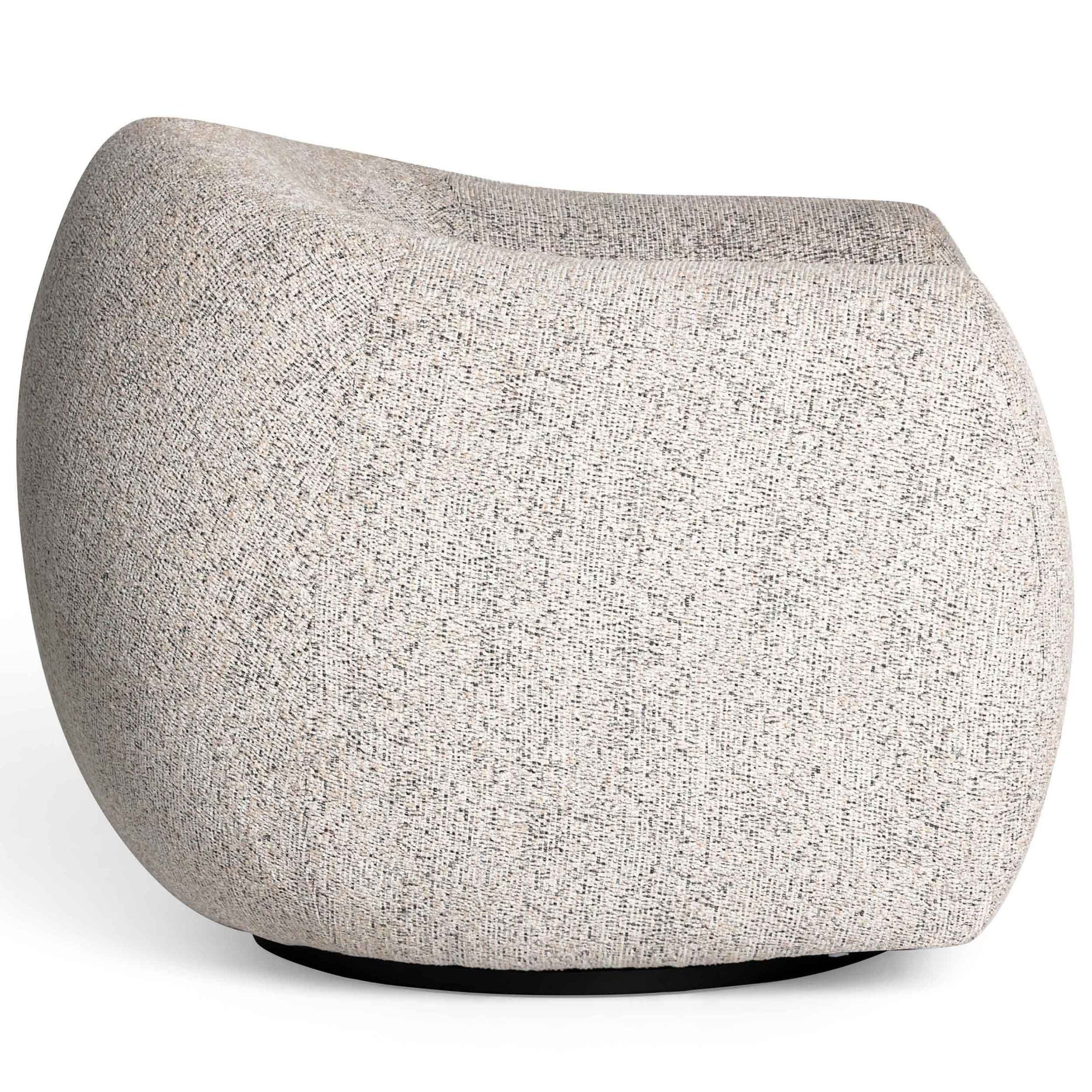The Judy Swivel Chair, Black/White, brings graphic contrast and cozy texture to any room with its contract-grade woven fabric. Featuring a stylish Art Deco silhouette, full foam construction, solid wood legs, and a 360-degree swivel, this chair combines comfort, playful design, and practical durability for everyday use.