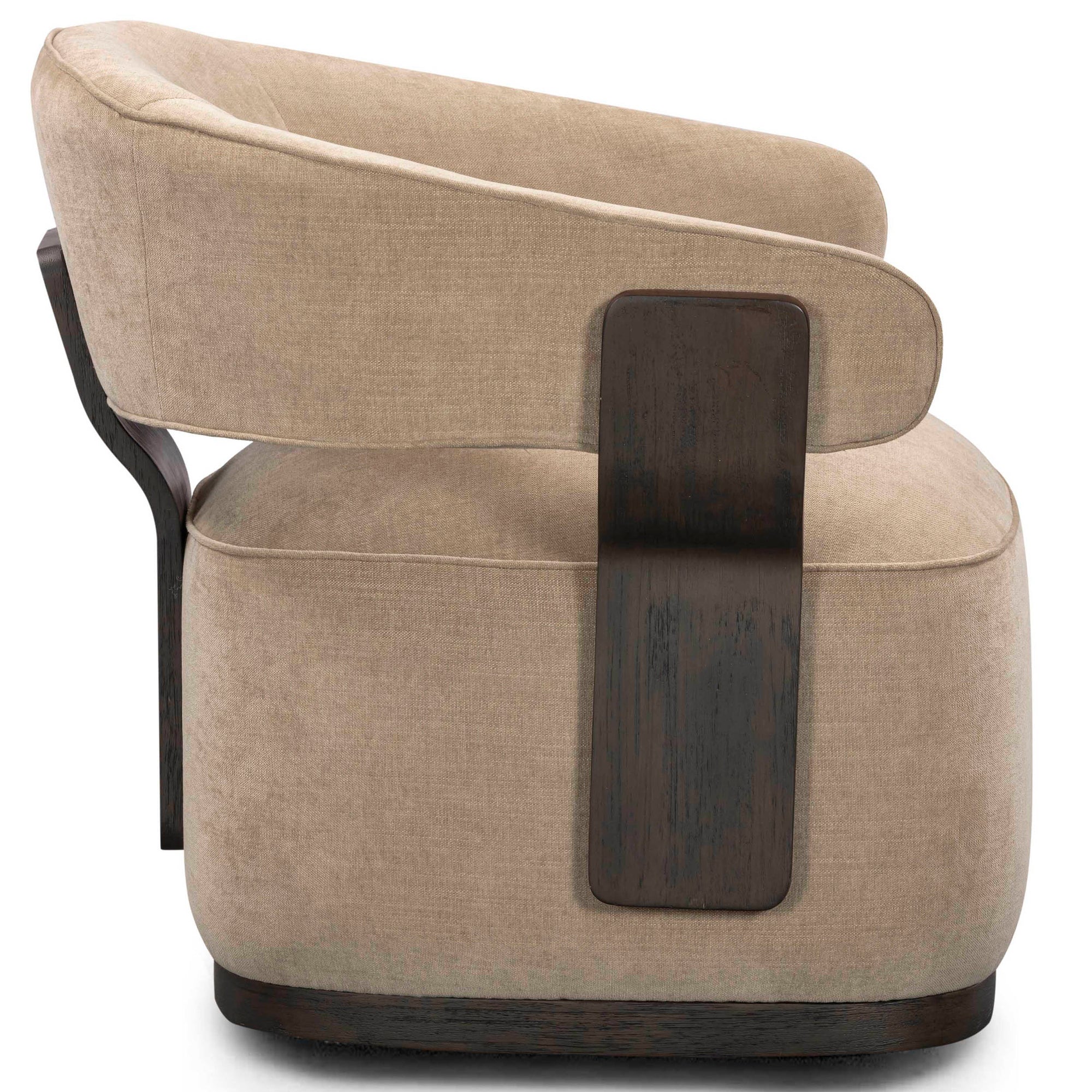 The Madison Swivel Chair embodies effortless comfort and modern charm. Upholstered in easy-clean, contract-grade fabric and perched on a 360-degree swivel base, it is designed to keep up with real life and real lounging. Crafted with solid wood and plush fiber-wrapped foam, this chair is sturdy, stylish, and ready to steal the spotlight.