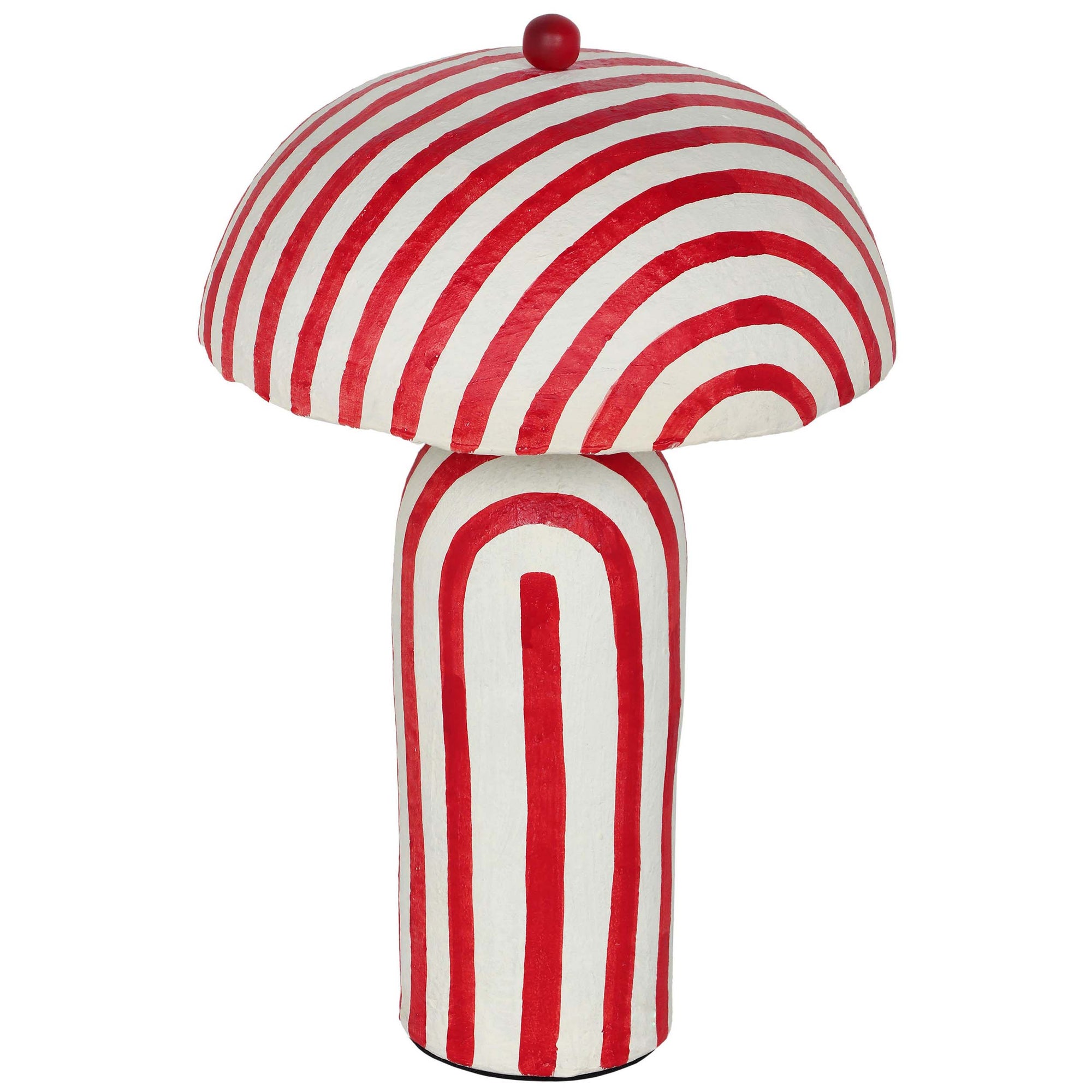 Maiori Striped Papier Mache Table Lamp, Red/Off-White