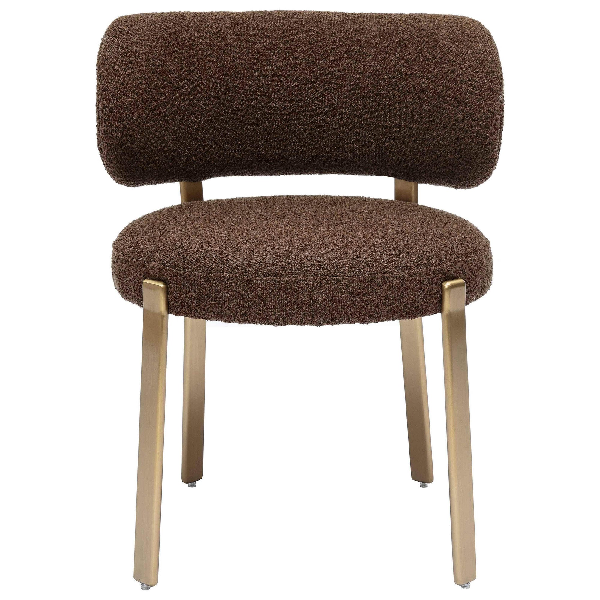 The Margaret Dining Chair, perfect combination of sculptural design and minimalist style. Expertly crafted to bring elegance to any dining space, this chair features a backrest and seat upholstered in soft performance chenille fabric. Its luxurious texture is matched by a comfortable cushion, providing lasting support for long dinner parties. Finished with stunning gold legs, Margaret effortless bridges sophistication and function.