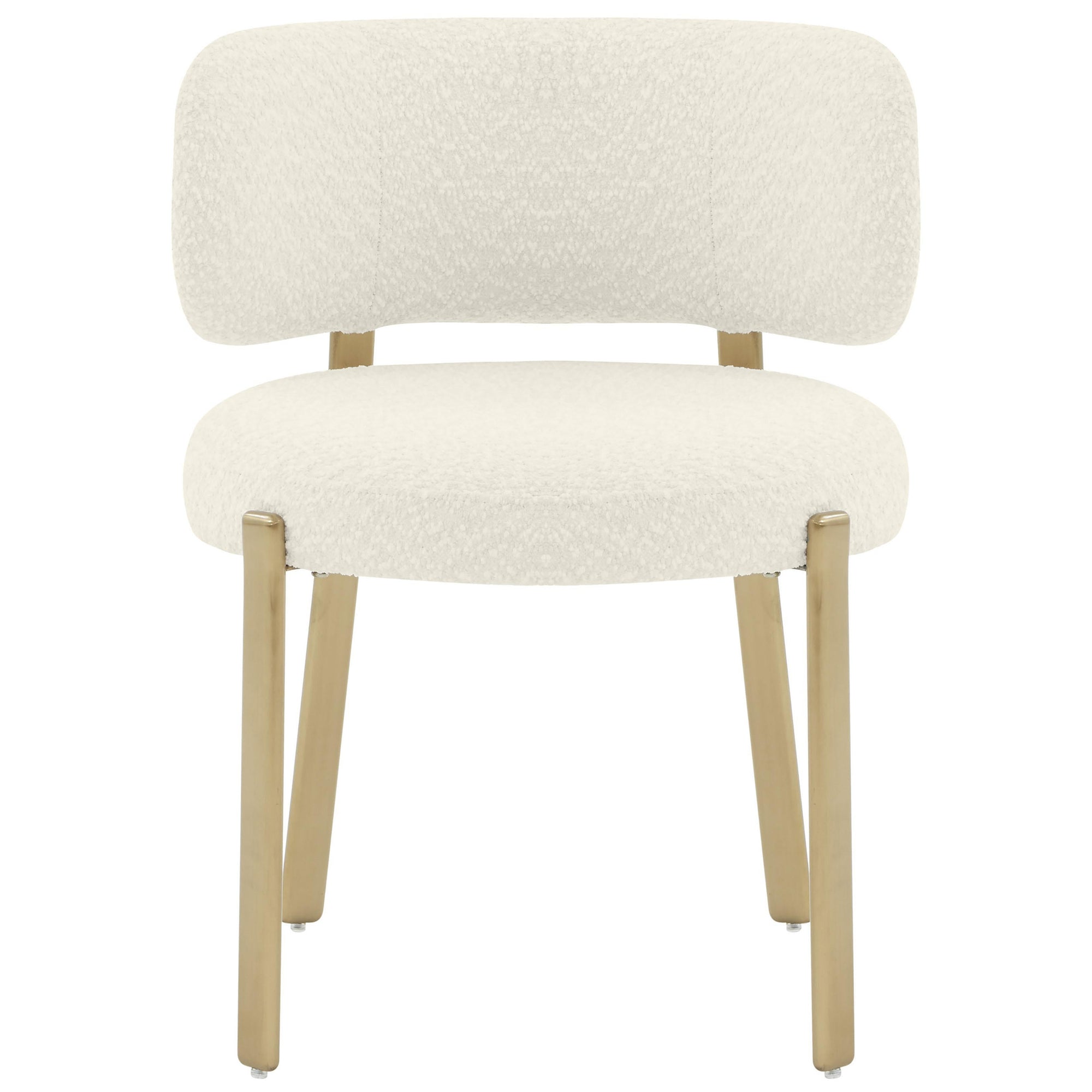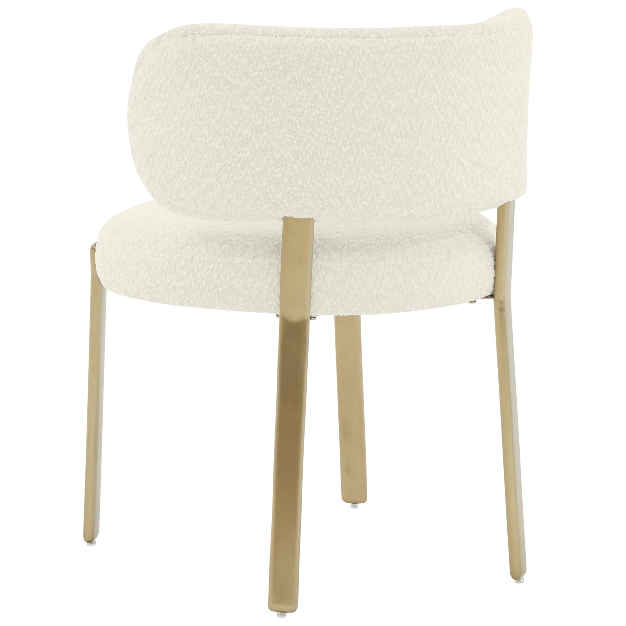 The Margaret Dining Chair, perfect combination of sculptural design and minimalist style. Expertly crafted to bring elegance to any dining space, this chair features a backrest and seat upholstered in soft performance chenille fabric. Its luxurious texture is matched by a comfortable cushion, providing lasting support for long dinner parties. Finished with stunning gold legs, Margaret effortless bridges sophistication and function.