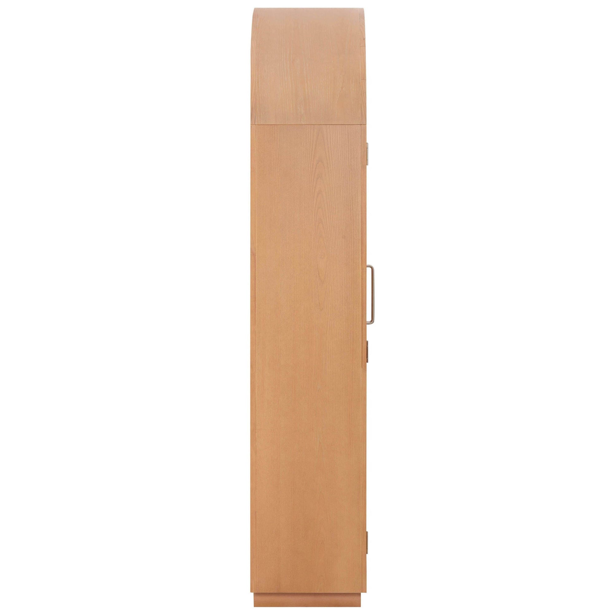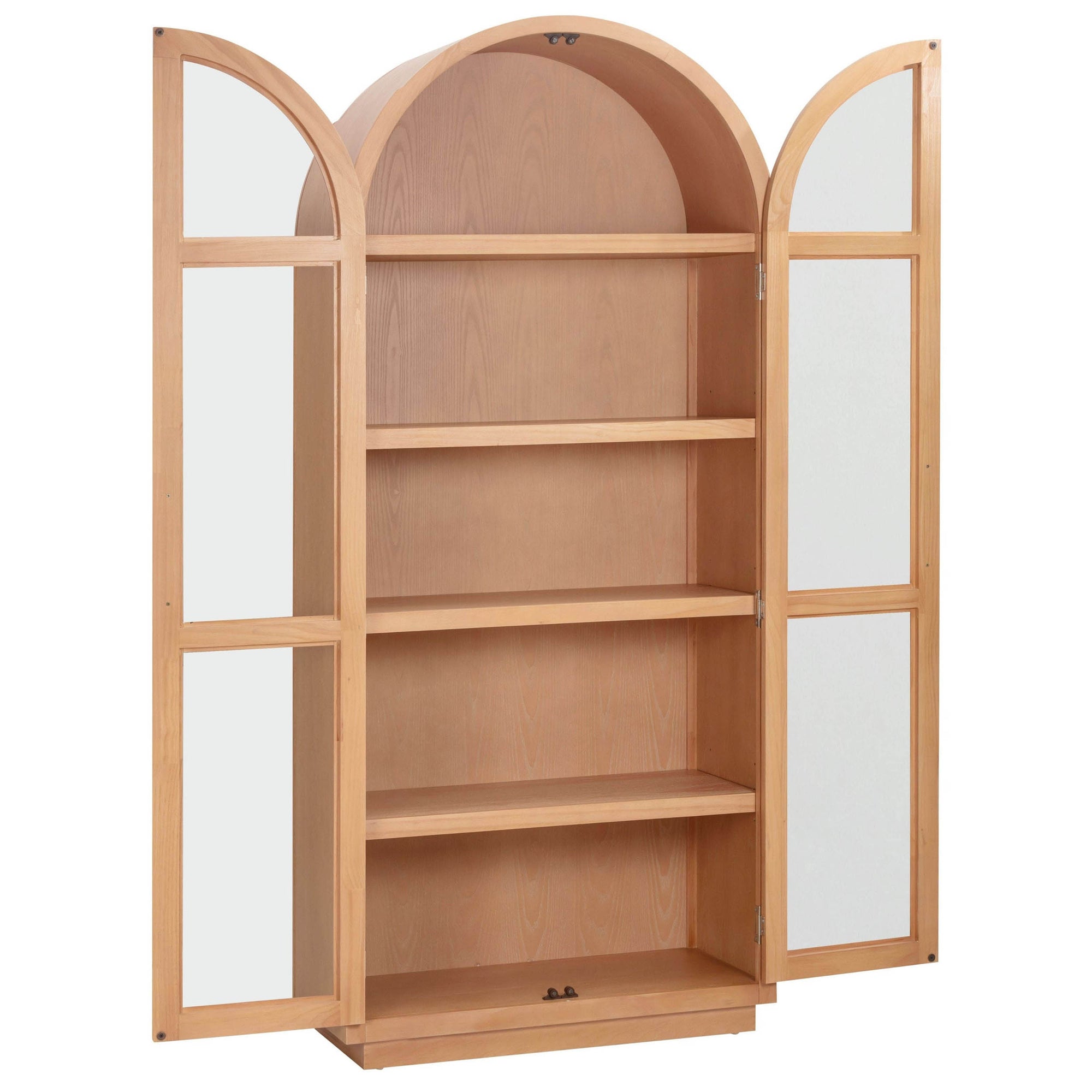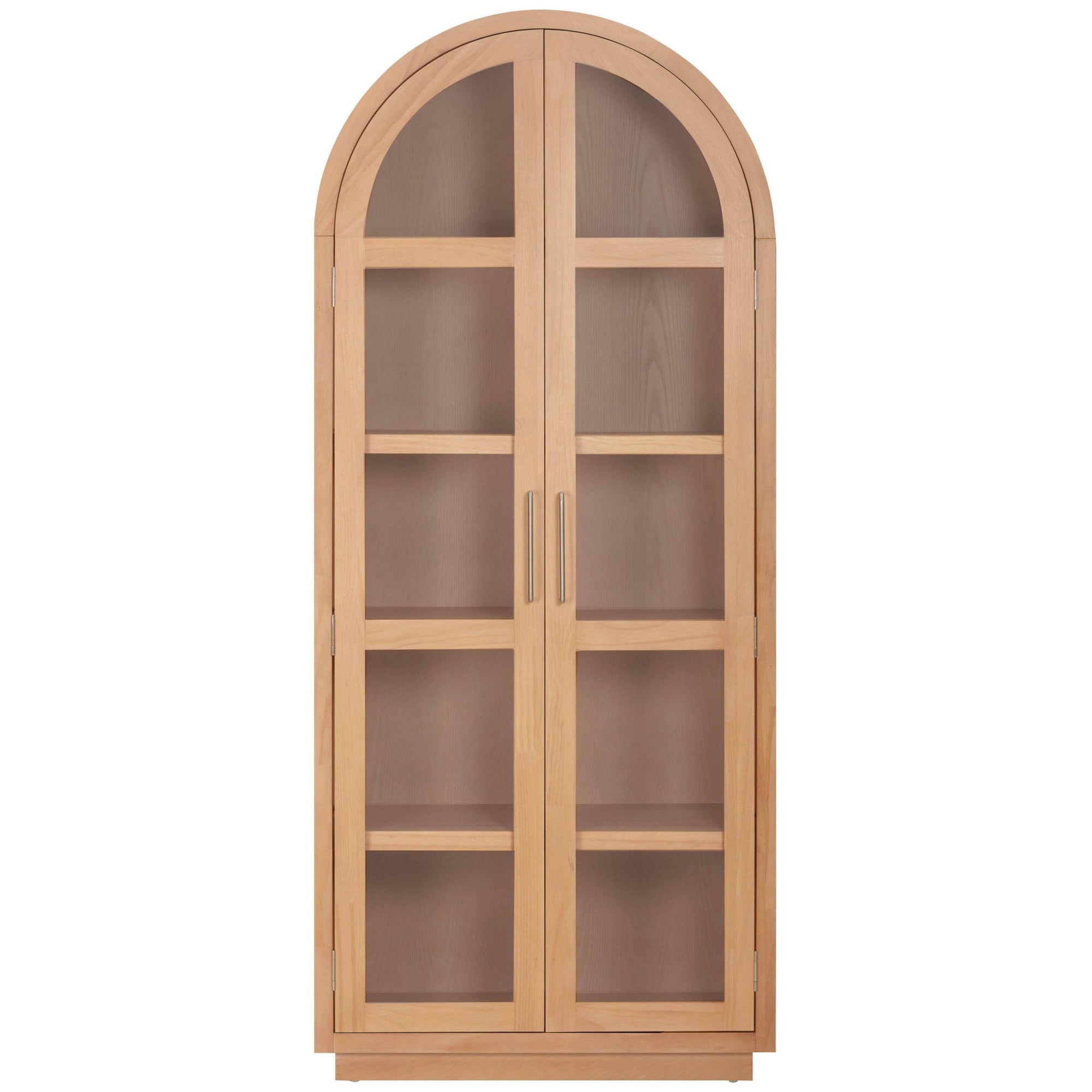 The Marlow Cabinet blends warm, sculptural design with modern functionality. Featuring an arched silhouette and minimalist frame in a natural wood finish, it offers two glass doors with soft-close mechanisms and adjustable shelving, perfect for displaying books, serveware, or curated objects. Its clean lines and timeless appeal make it a versatile addition to living rooms, dining areas, or any space in need of elegant storage.
