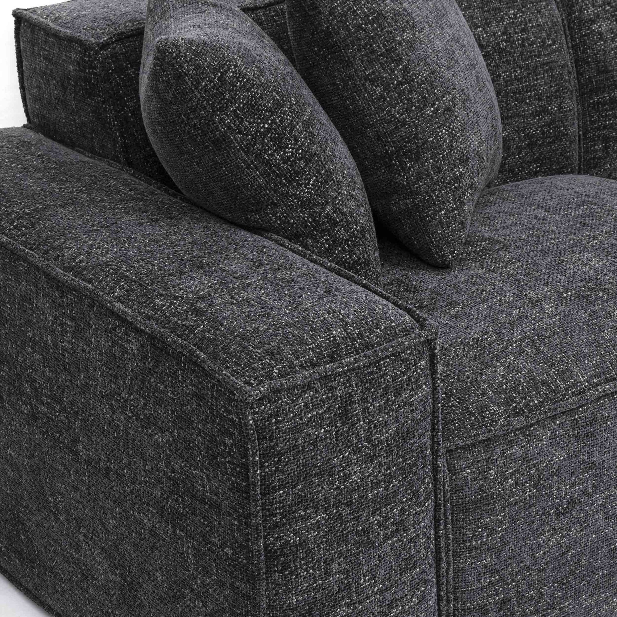 The Mindy 4 Piece Sectional combines modular versatility with cozy texture as part of the Mindy Modular collection. Upholstered in soft chenille basketweave with thick stitching, this sectional offers deep seating and flexible configuration options. Built-in alligator clips make setup easy, while plush cushions provide comfort and style, whether used alone or paired with other pieces in the collection.